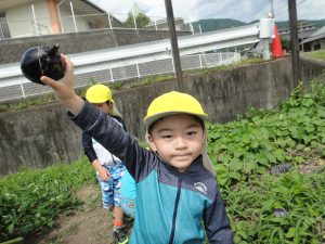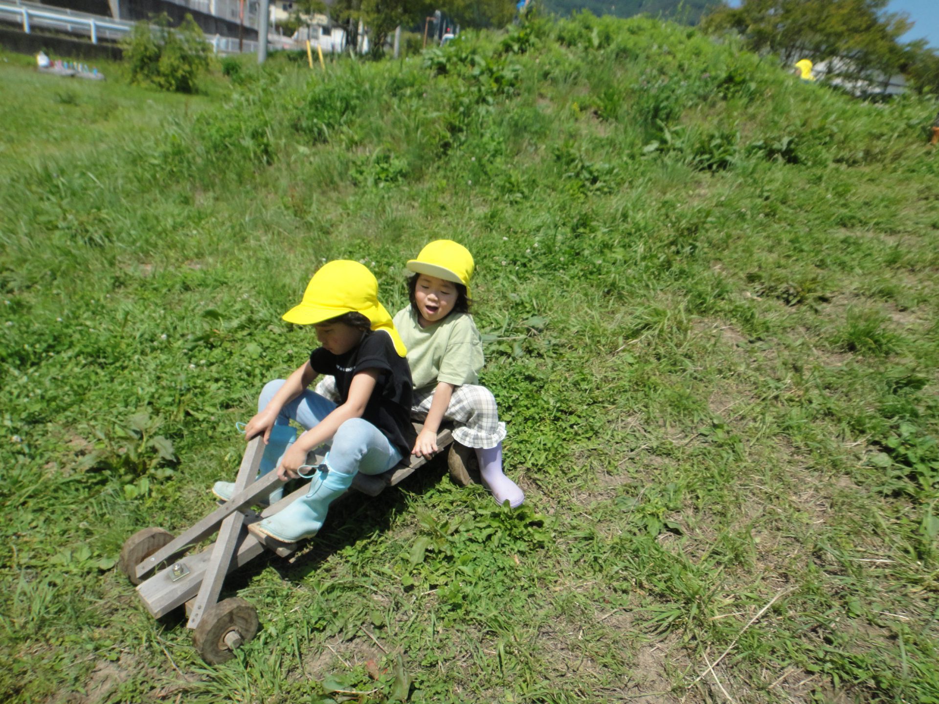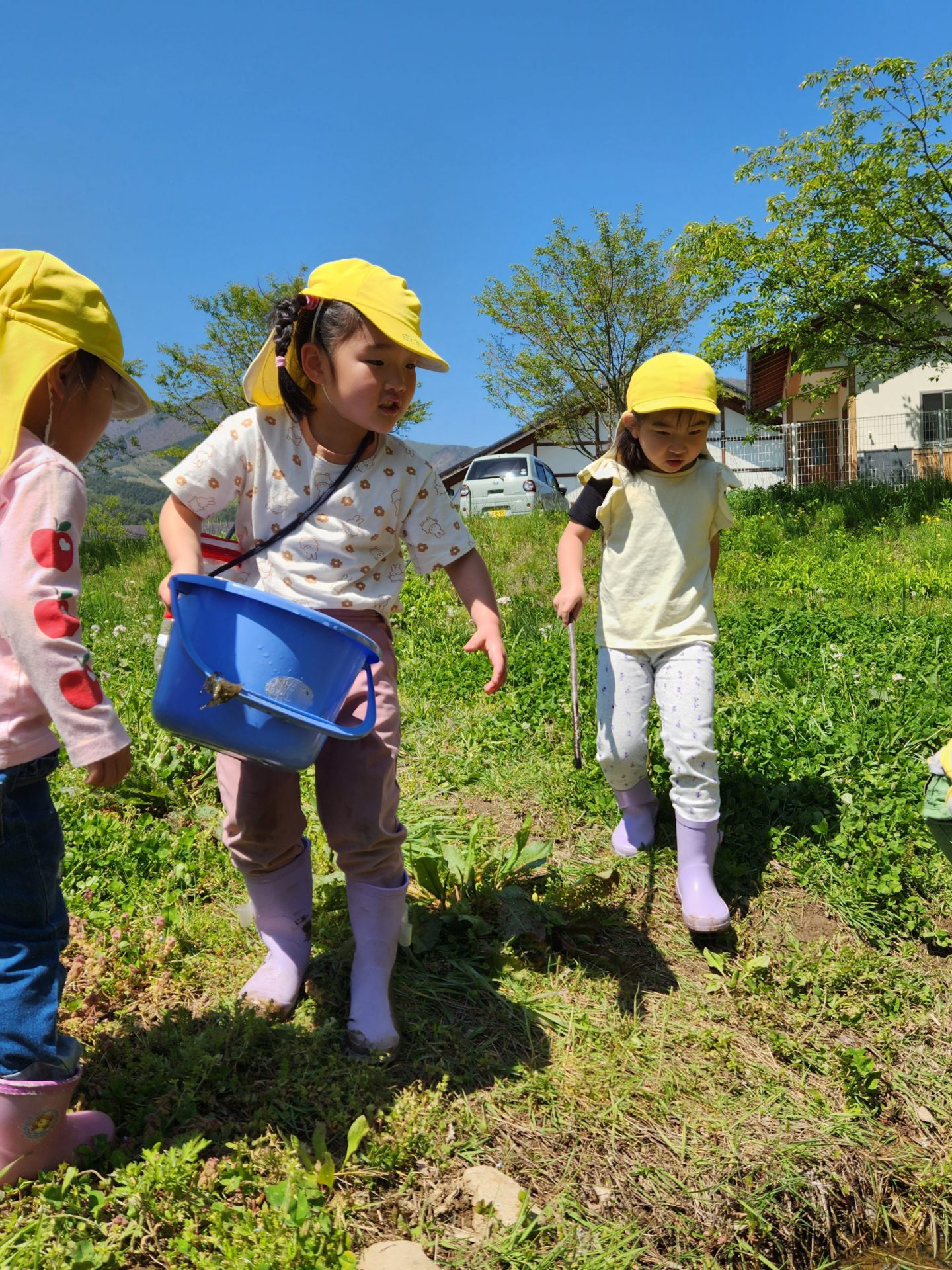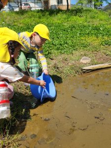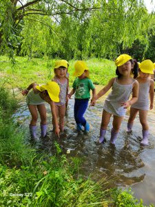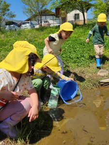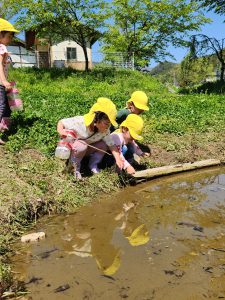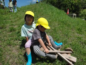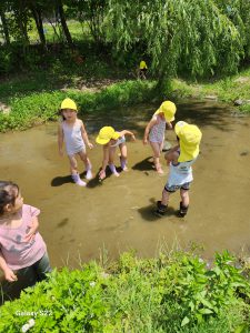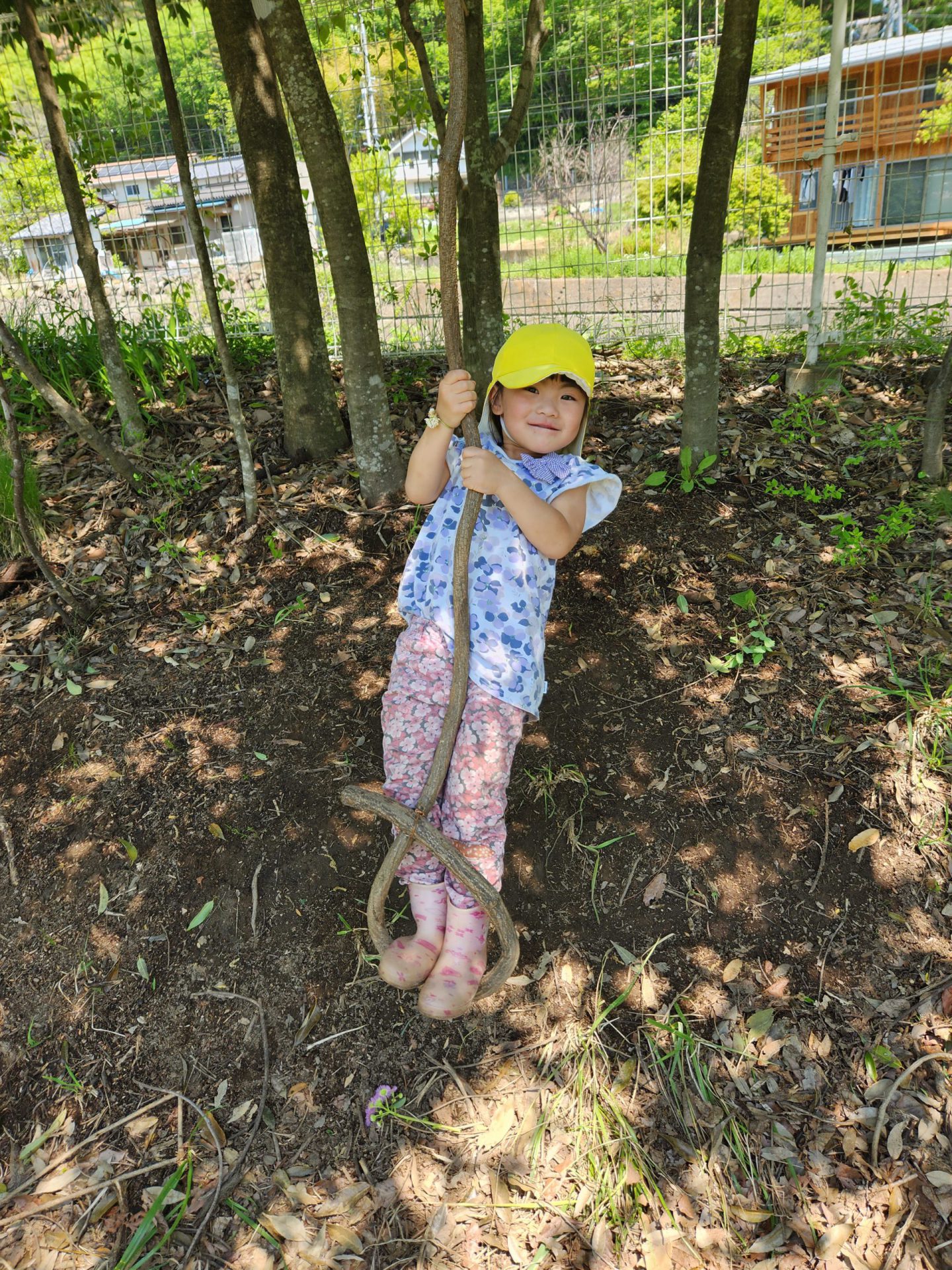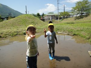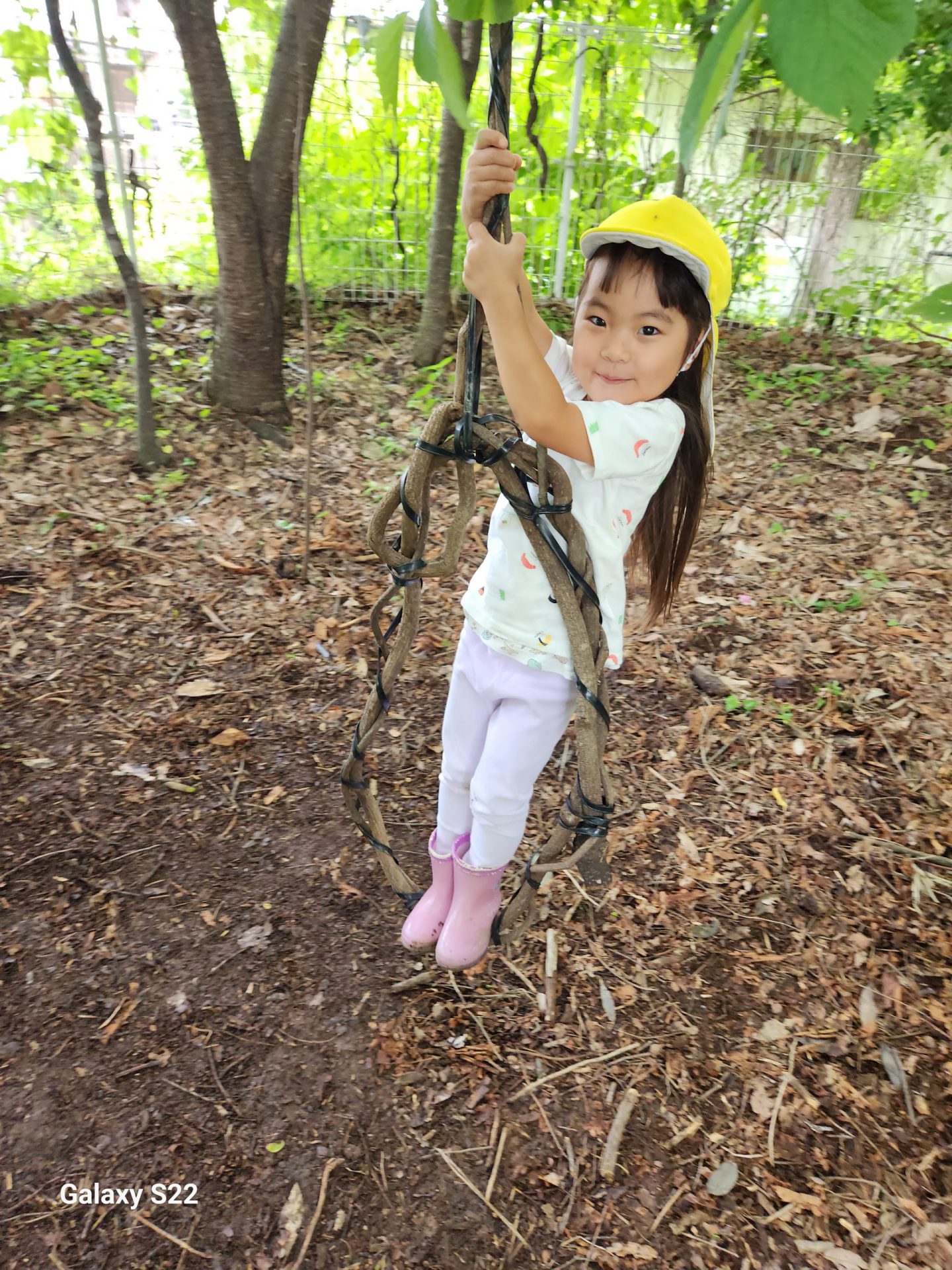 年中になりいつものようにあおきっ子広場にあそびに行くと、「先生!ブランコがあるよ」「アカハライモリが見えた!」と昨年度より更にパワーアップしている広場にまた目を輝かせあそび出す子ども達。