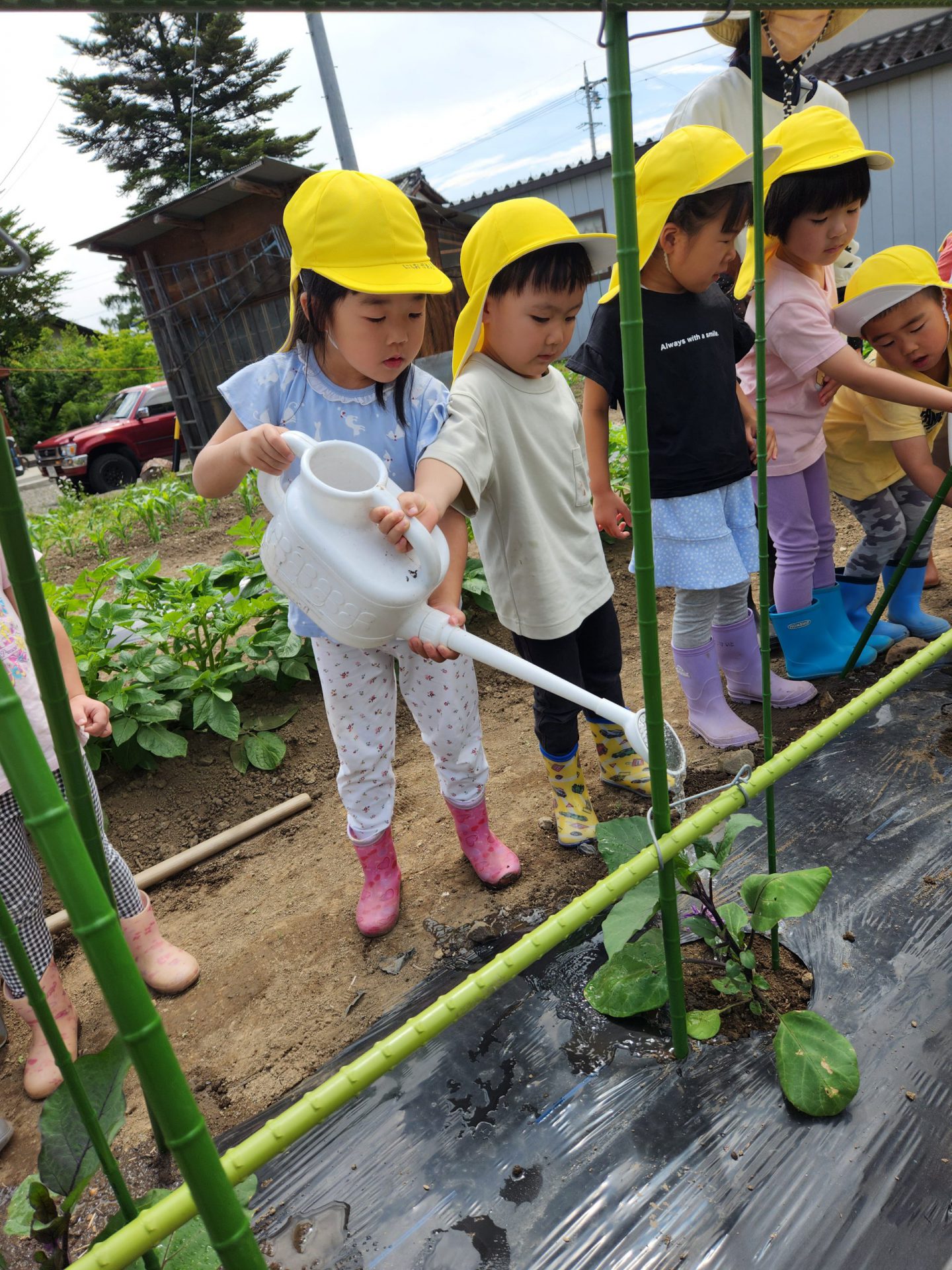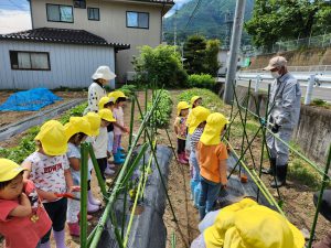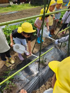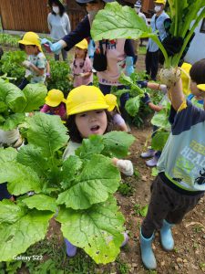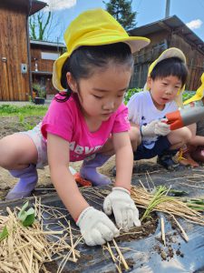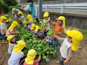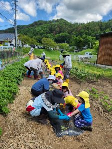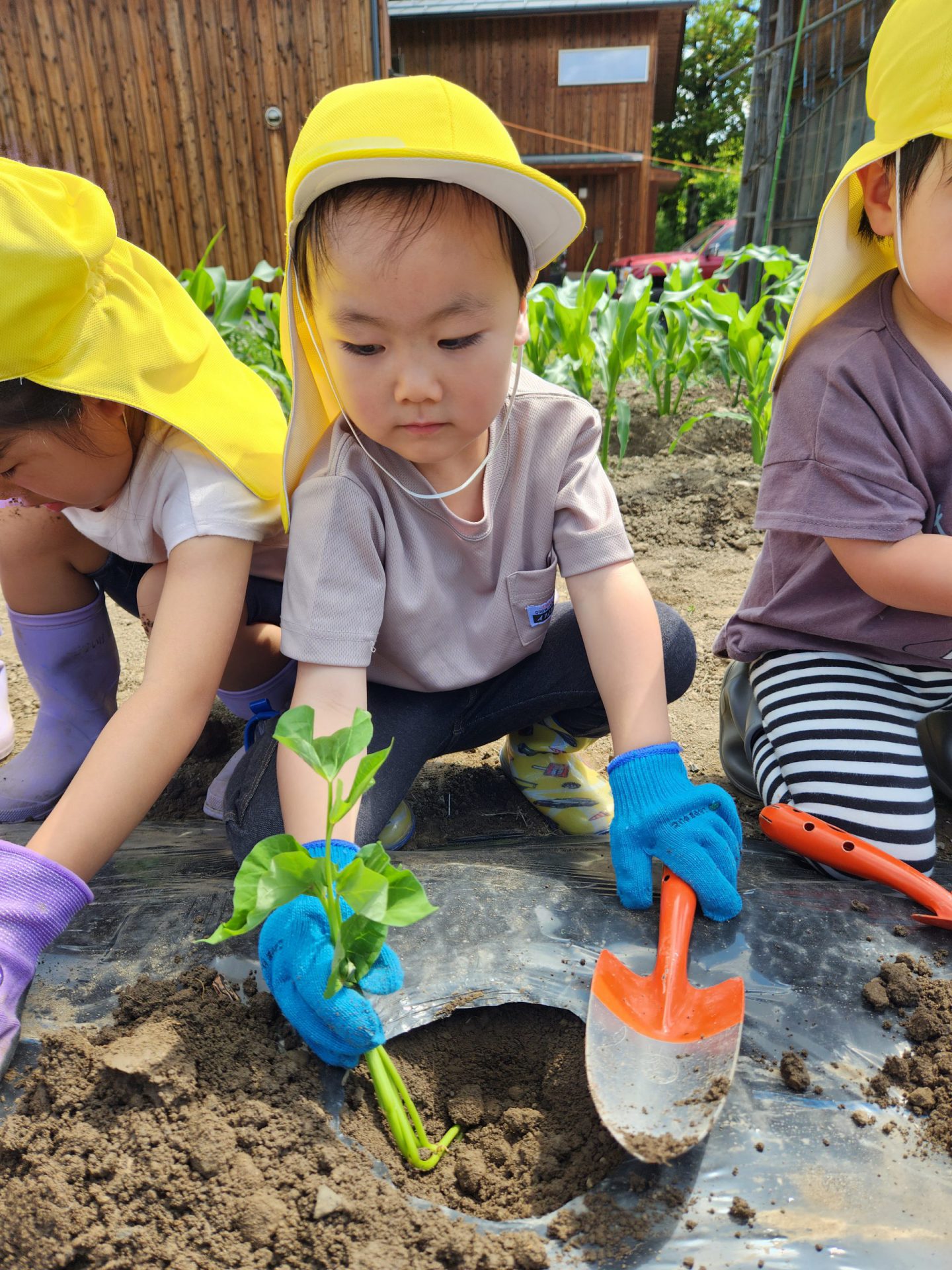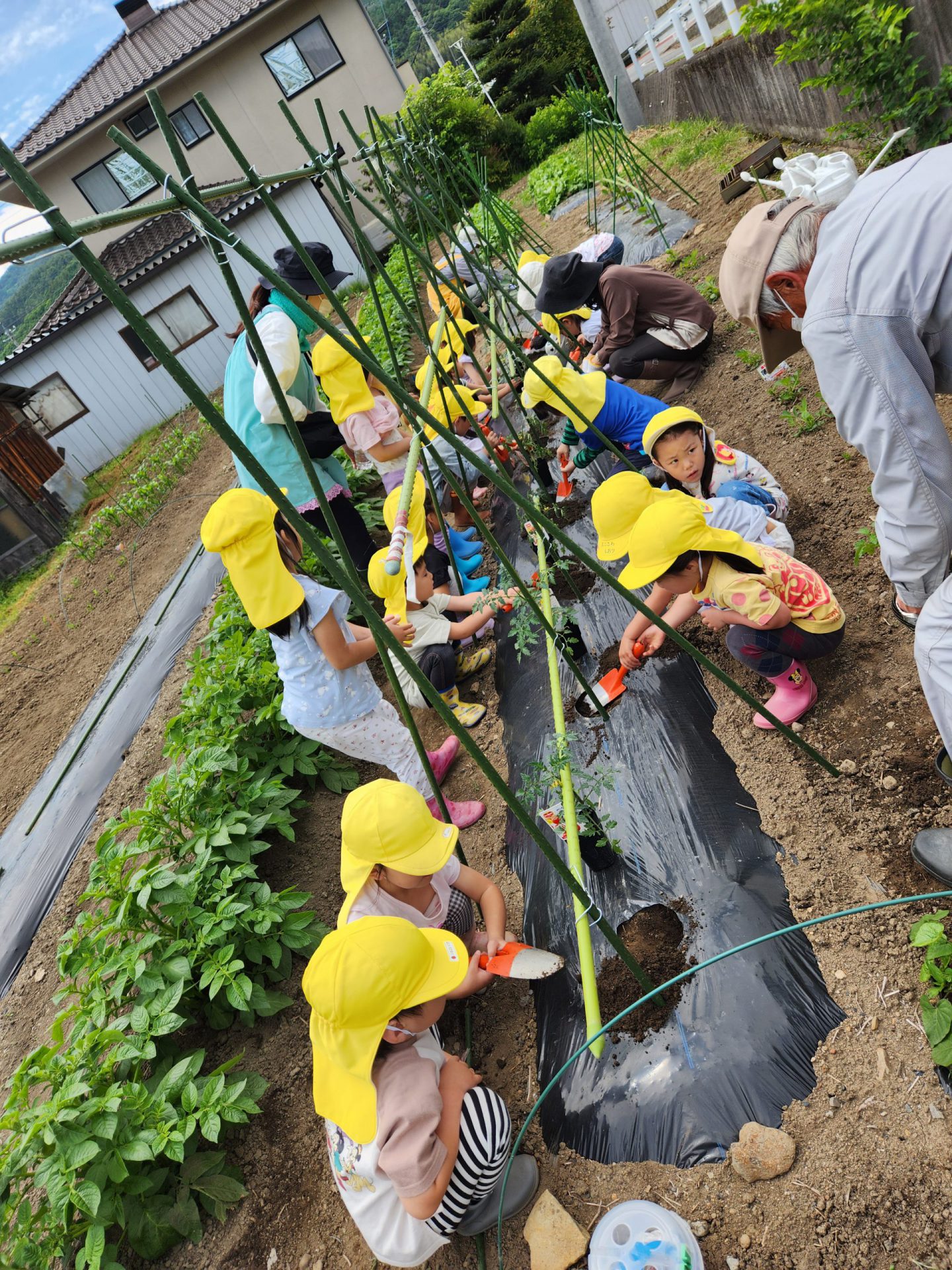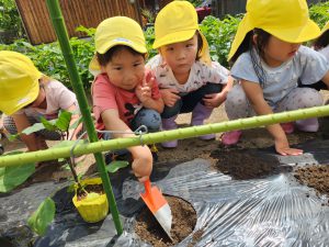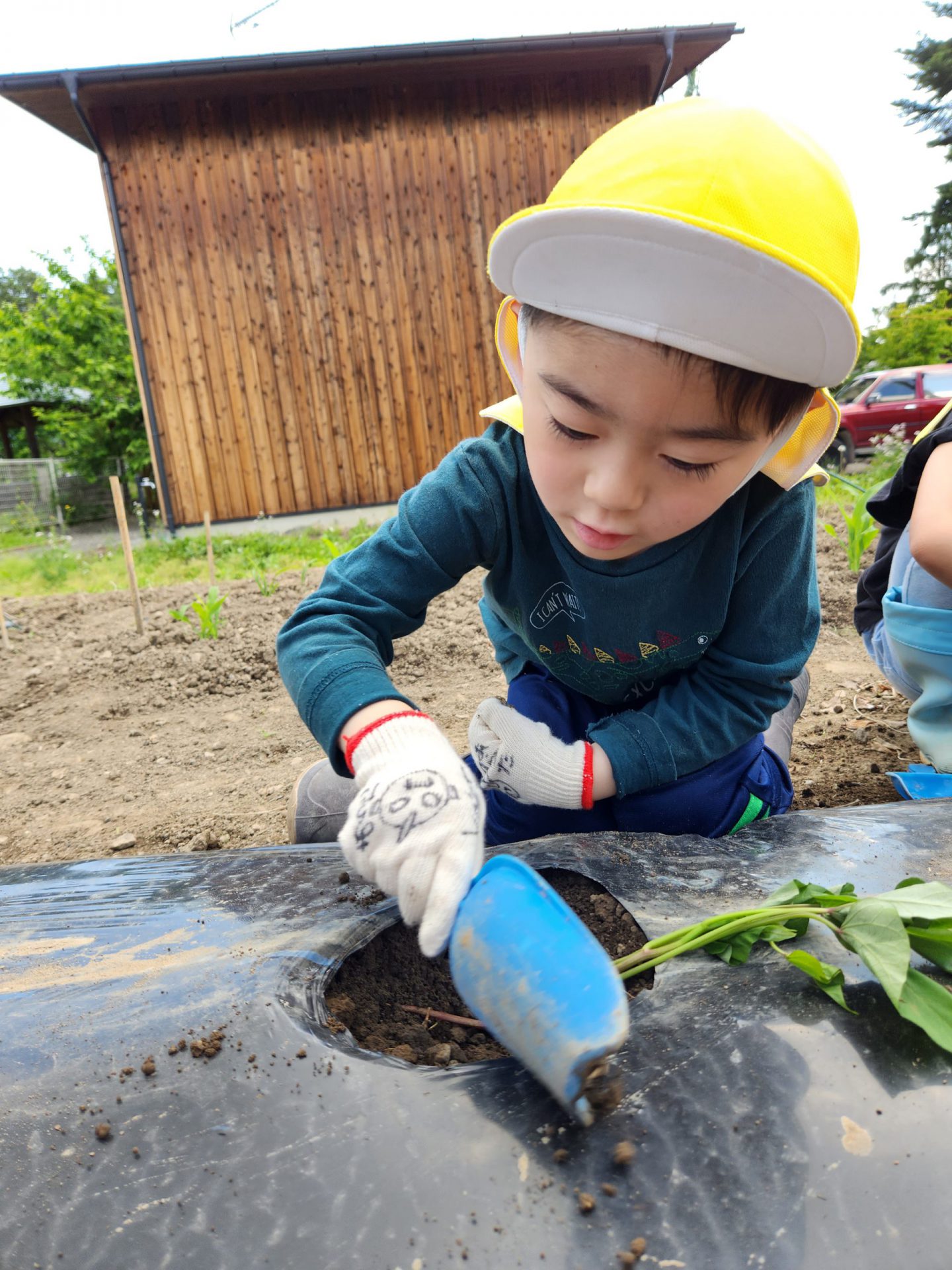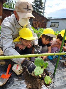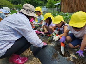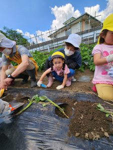 年中組メインのさつまいも植えも今年度はいよいよおじいちゃんおばあちゃんのお手伝いも復活です。