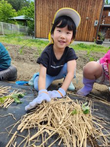 土のお布団を掛けたら、藁の布団も掛けてあげよう!