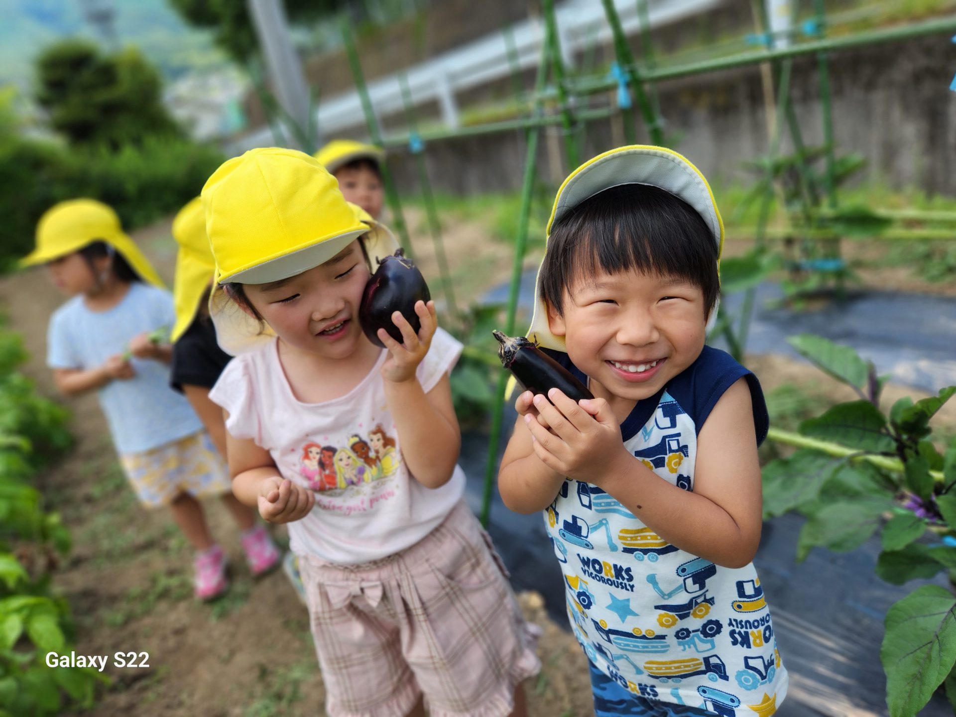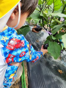 ナスゲットだぜ~!ナスの上のところもチクチクするよ~。気を付けて!