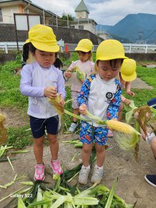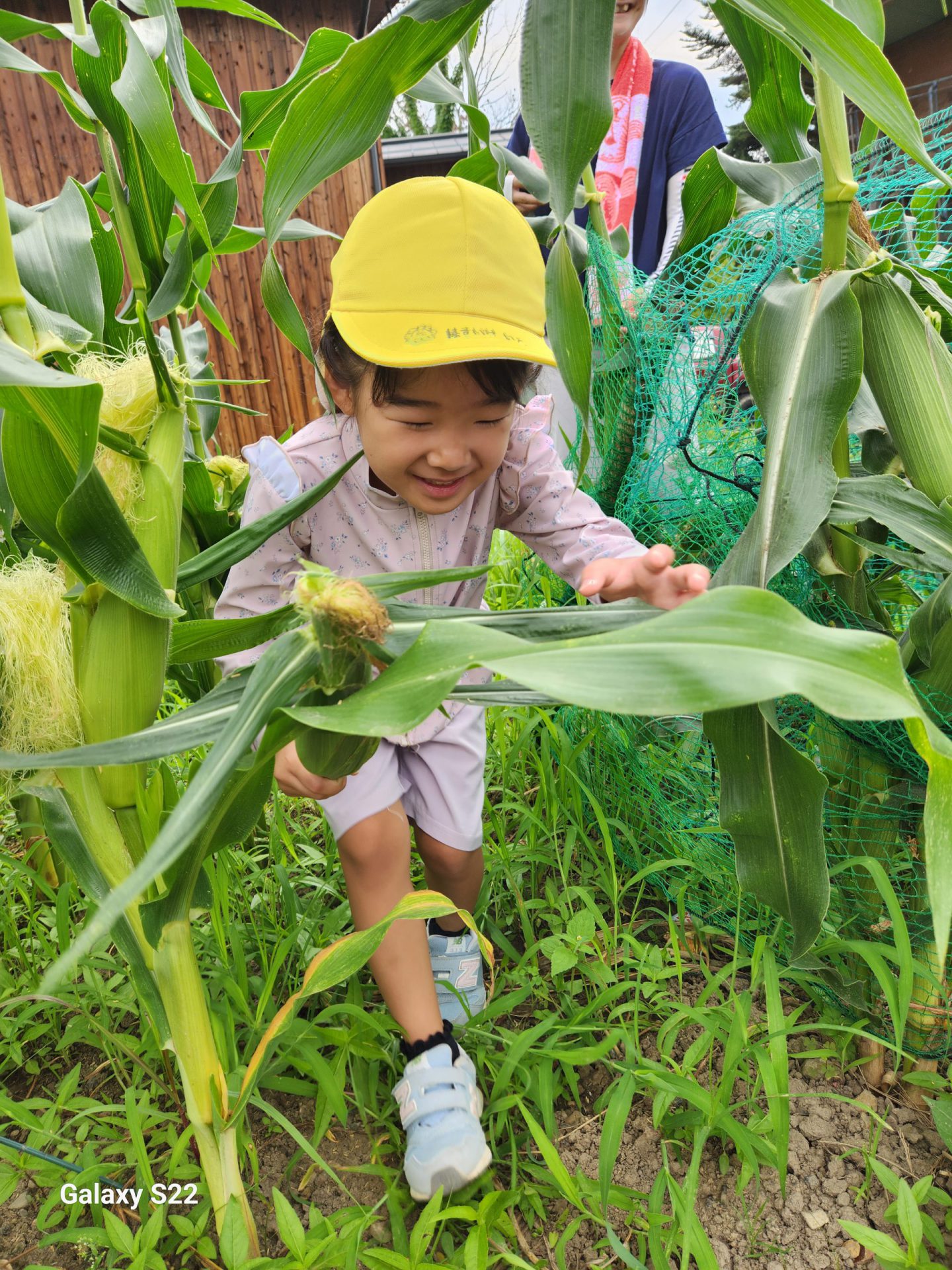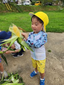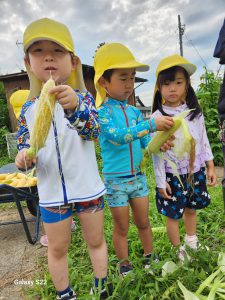 そして、モロコシは園長先生に教えていただきながら皮むきもしました。