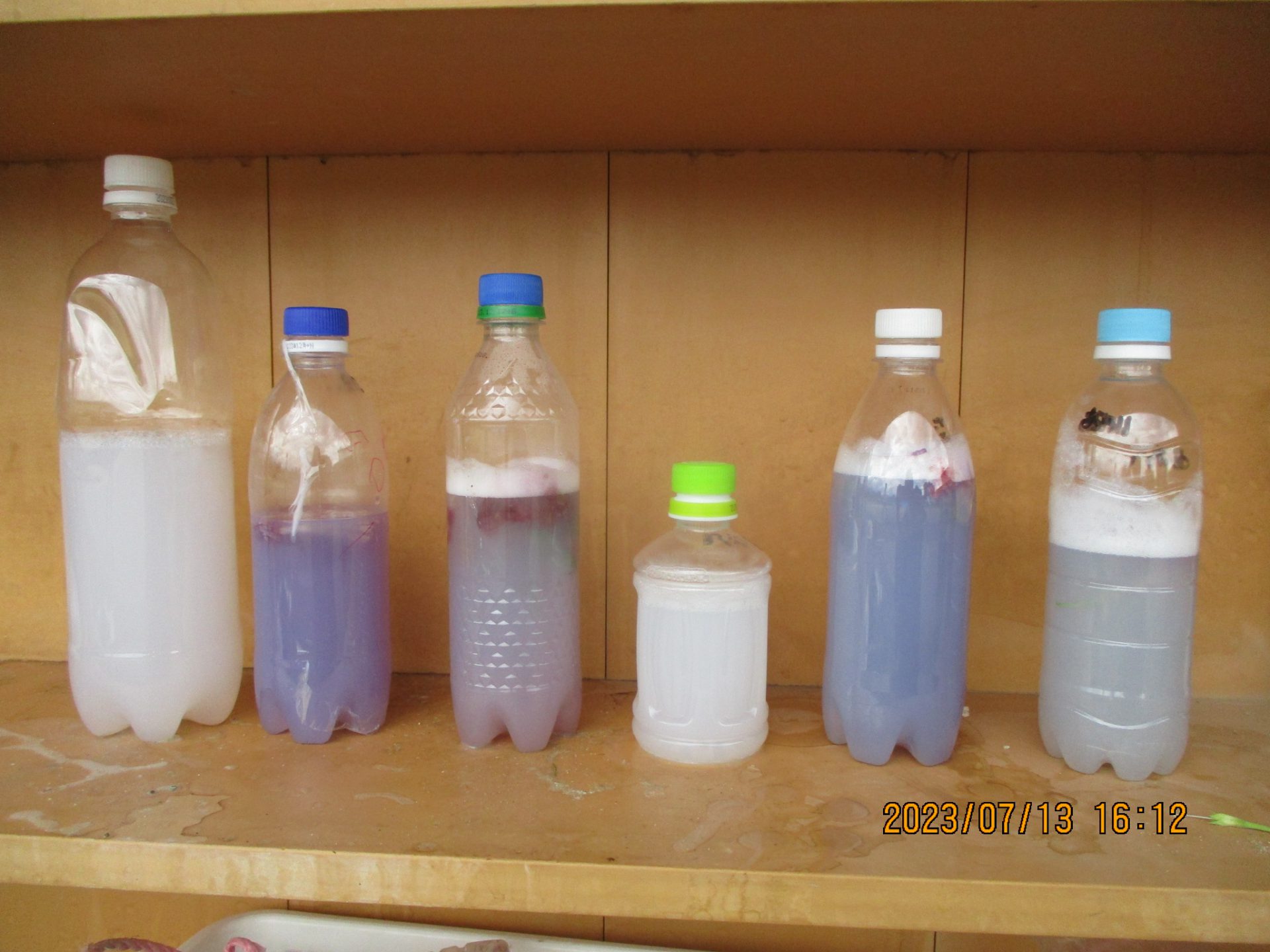 同じ朝顔の花でこれだけ様々な色水ができたのは初めてです。