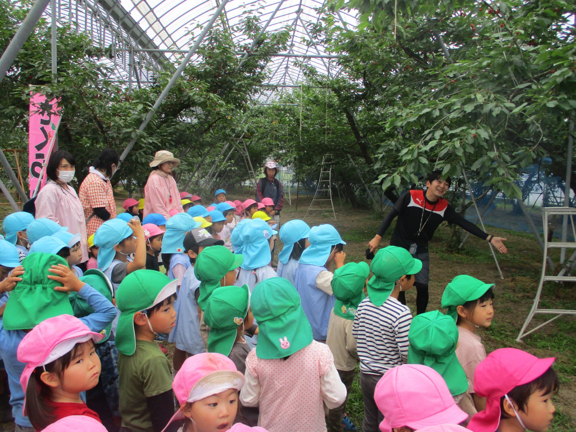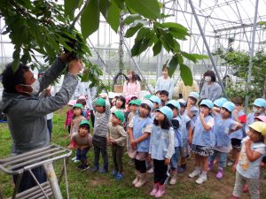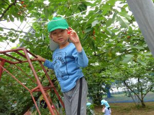 あいにくの雨降りでしたが、以上児のお友だちで、今田平の「さくらファーム」にさくらんぼ狩りに行ってきました。