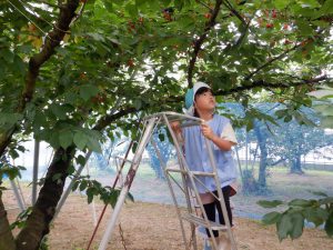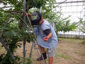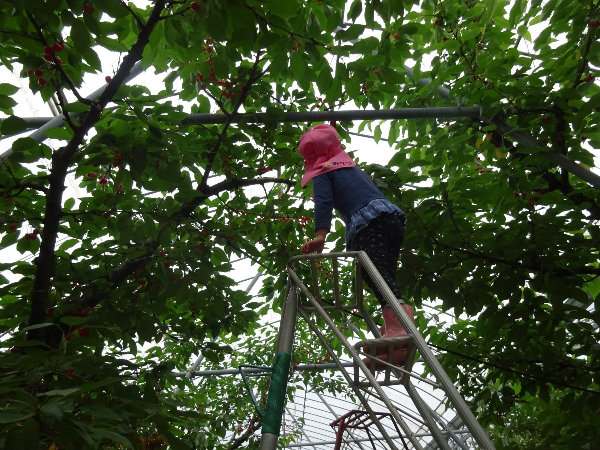 登るときはいいけど、さくらんぼ持って降りてくるのは大変!・・・気をつけて。