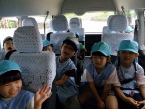 ジャンボタクシーに乗って張り切って出かけていきました。