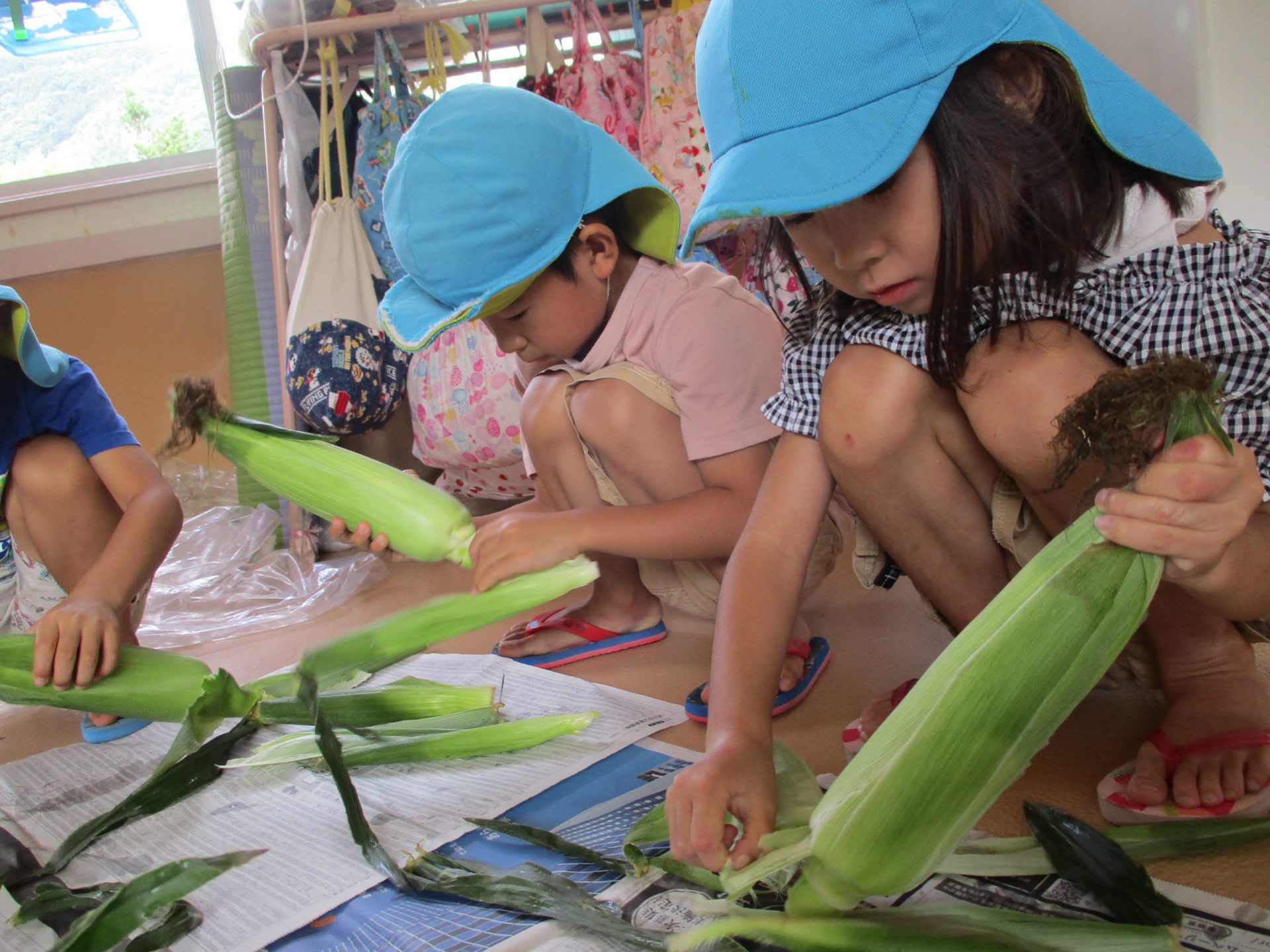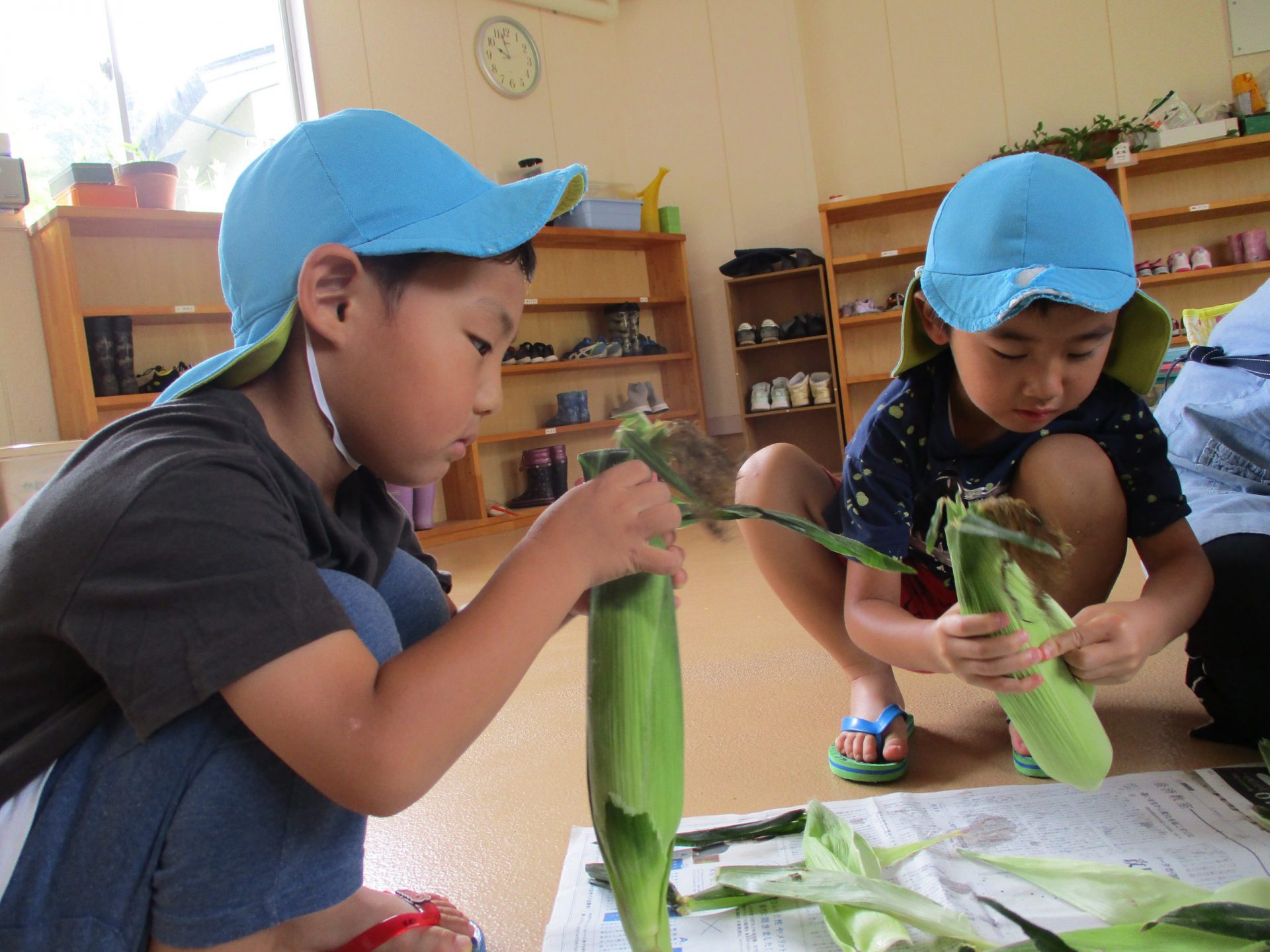 午前中に年長さんが、とうもろこしの皮むきもして準備してくれました。