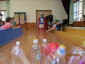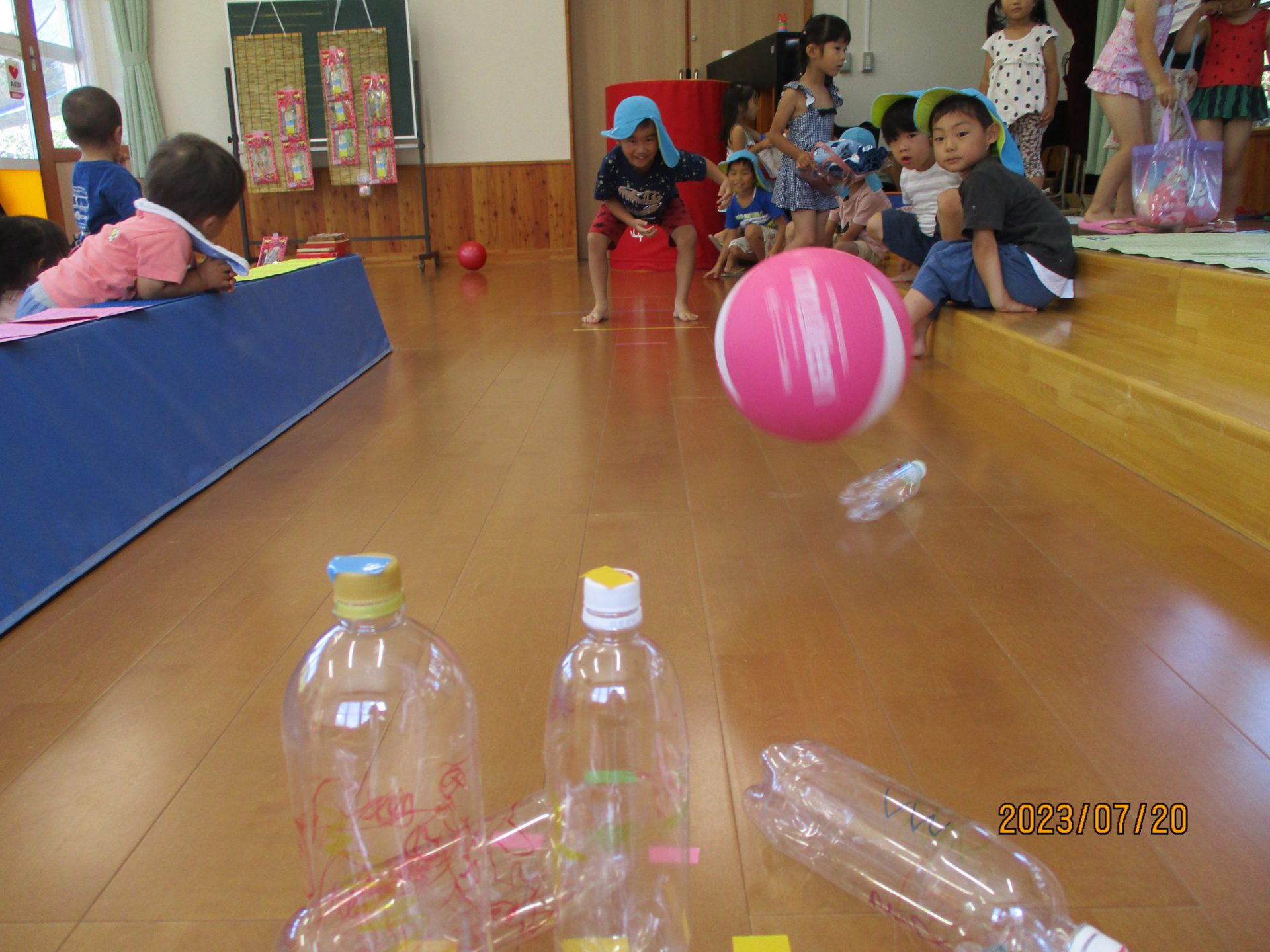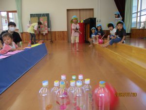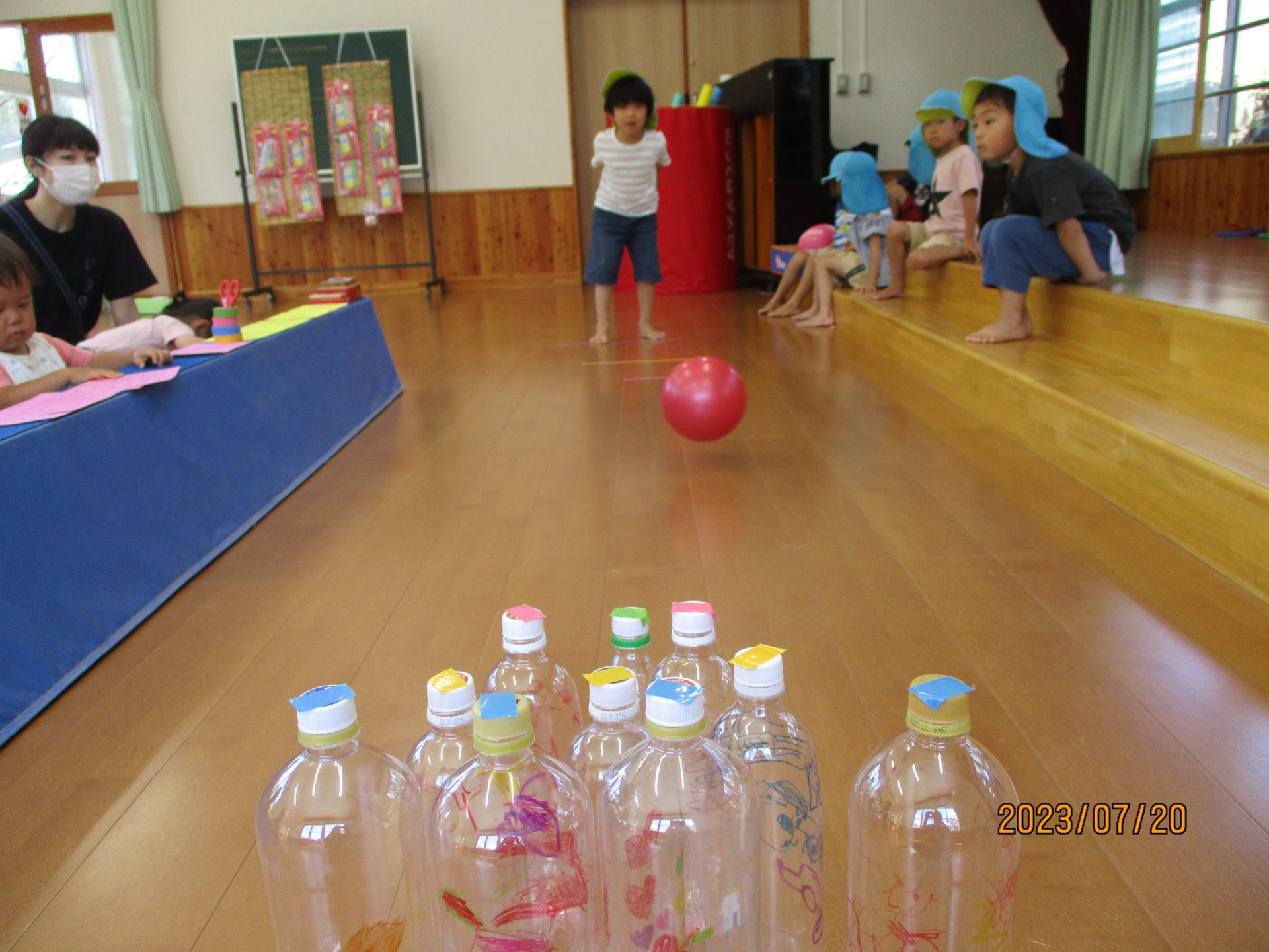 こちら、ボーリングコーナーでは、空のペットボトルが弾けるいい音が響いています。