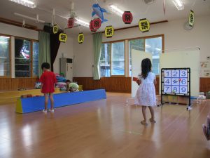 ・なつまつり当日だけではなく、だんだんと期待が高まったらいいな、と思い「プレオープン」の日や「前日祭」の日を設けた。プレオープンでは「もっとこうした方がいいんじゃないか?」ということが、子どもも保育士も見つかり、再度考えて工夫することができた。前日祭では、子ども達が楽しみながら 具体的に期待を高めている様子が見られた。今後、なつまつり当日を楽しみ、その先も遊びとして途切れず継続的に発展的に楽しんで行けたらと思う。