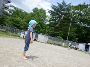 そろそろ今日の遊びはおしまいかな?の頃、園庭の真ん中に立つお友だちがいました。