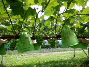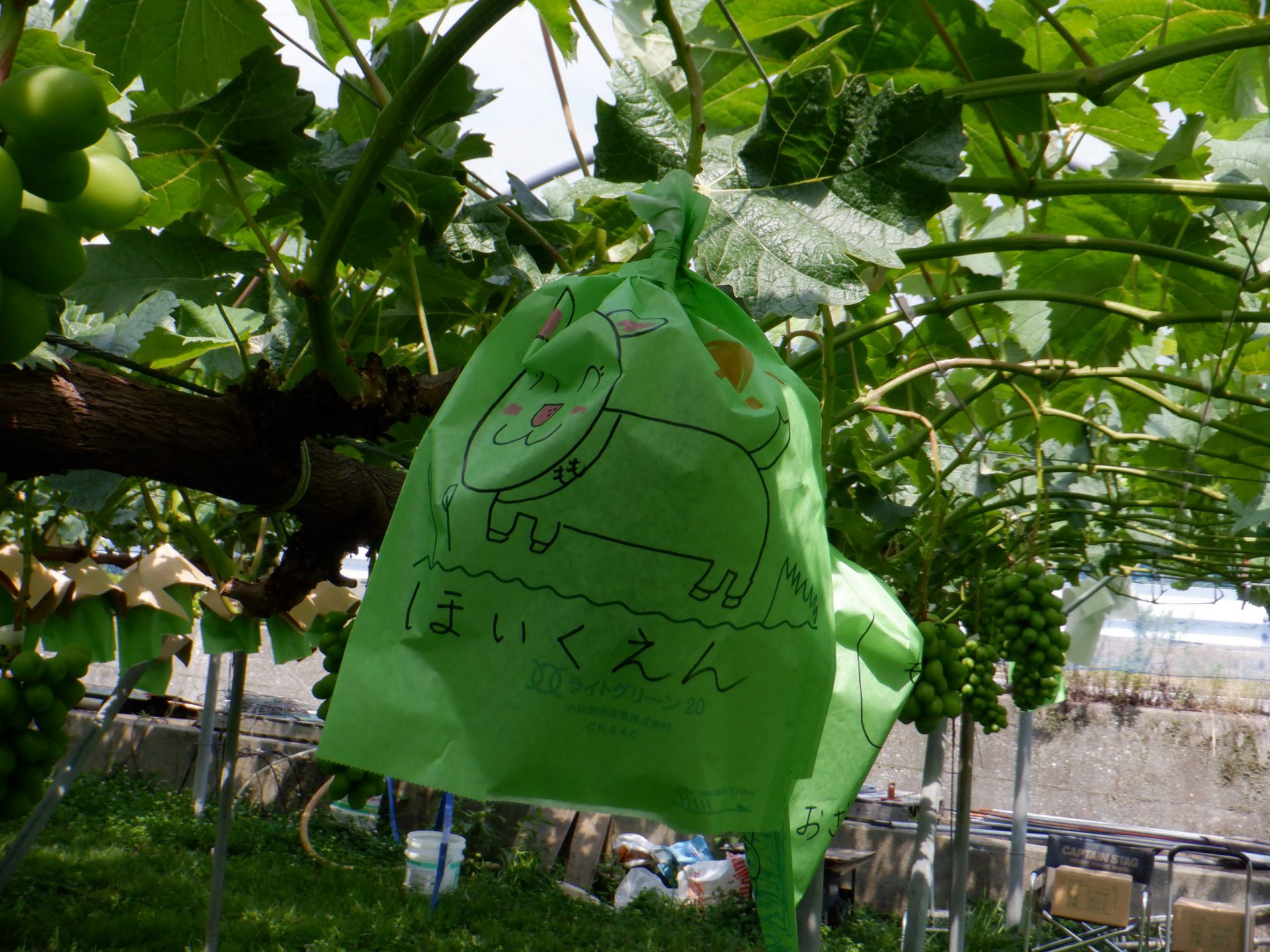 「僕はこのぶどうにする! やさしく袋をかけてあげるんだよね。」
