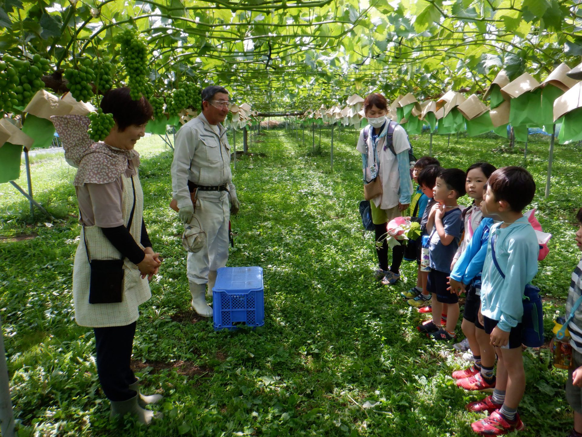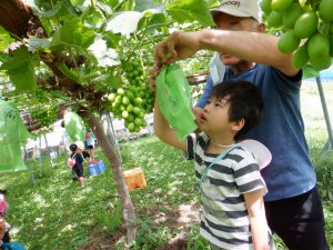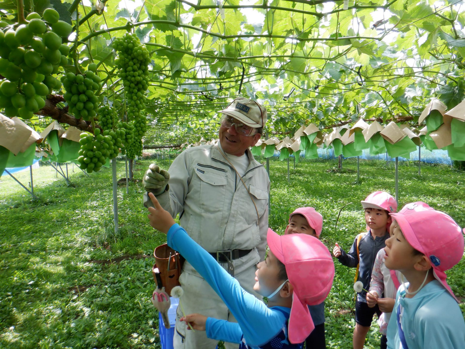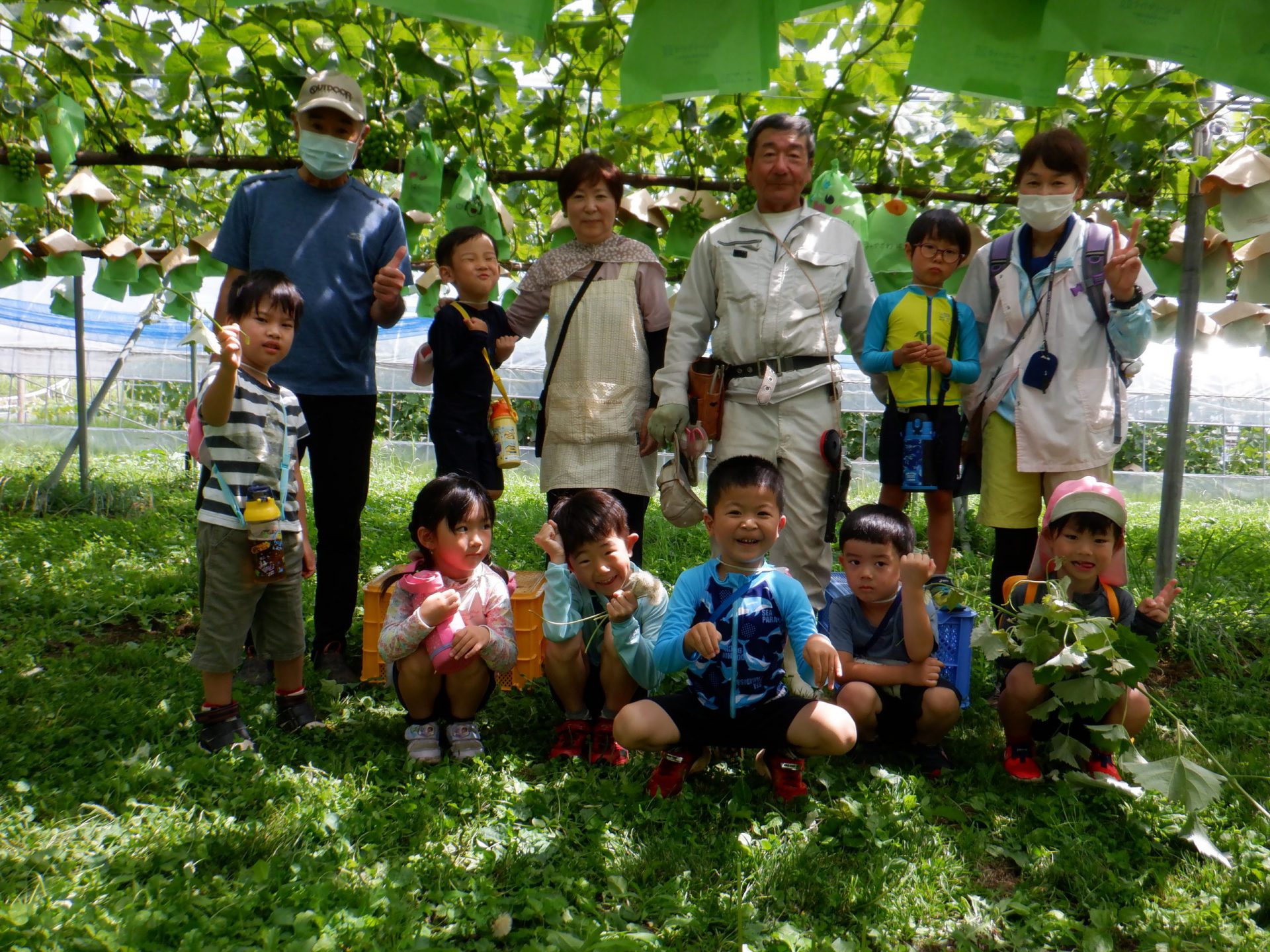 ・毎年、年長さんになると荒井さんのシャインマスカットの畑に呼んでもらえることを楽しみにしている子ども達です。