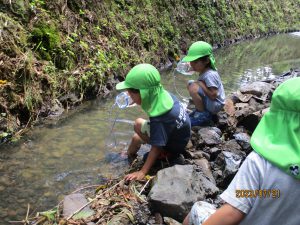いつも遊ぶ川にはカニが少なく、「おおきな川ならたくさんいるかな?」と楽しみにしている子ども達。