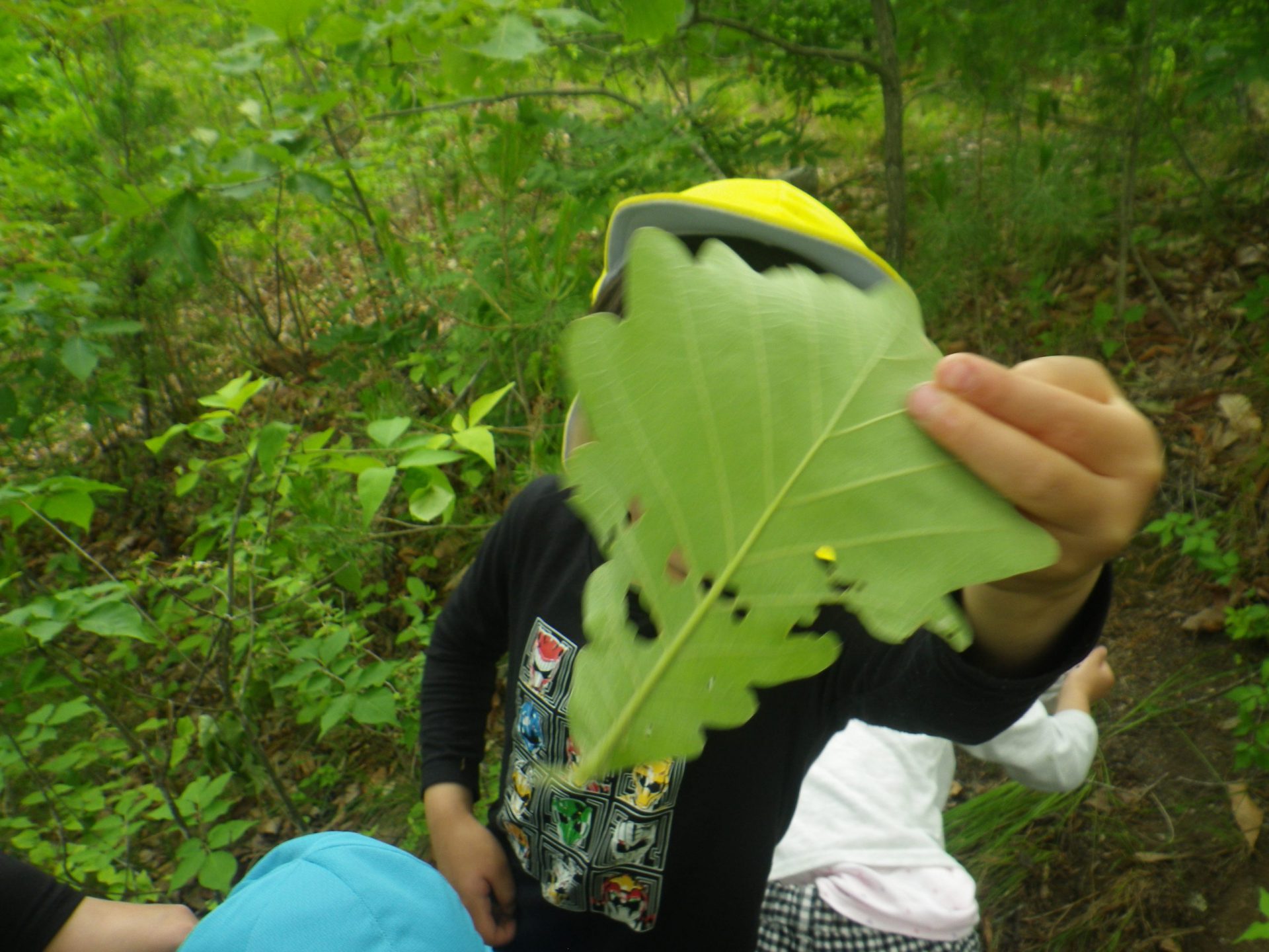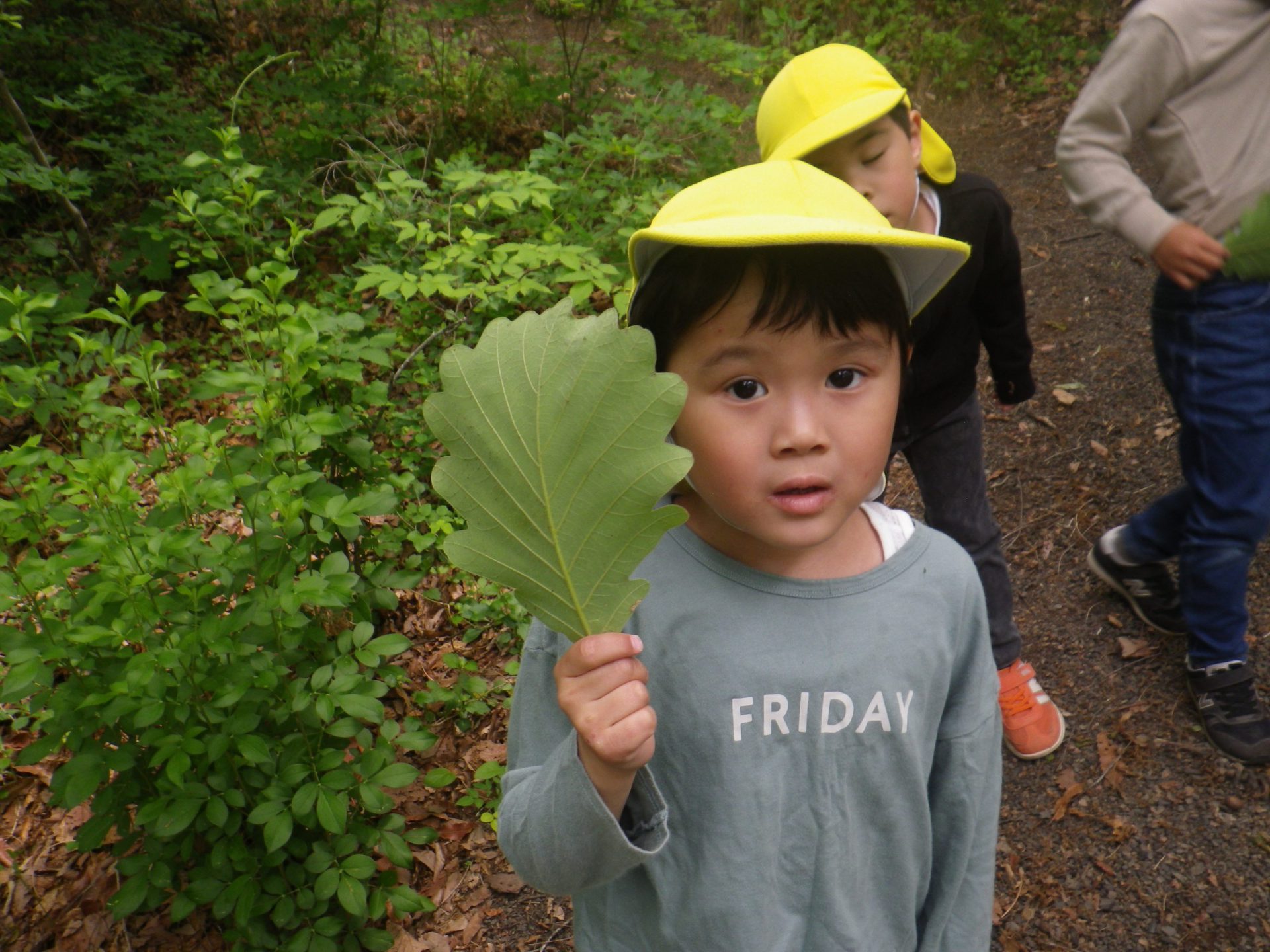 「このカシワの葉、顔くらいあるねぇ。」