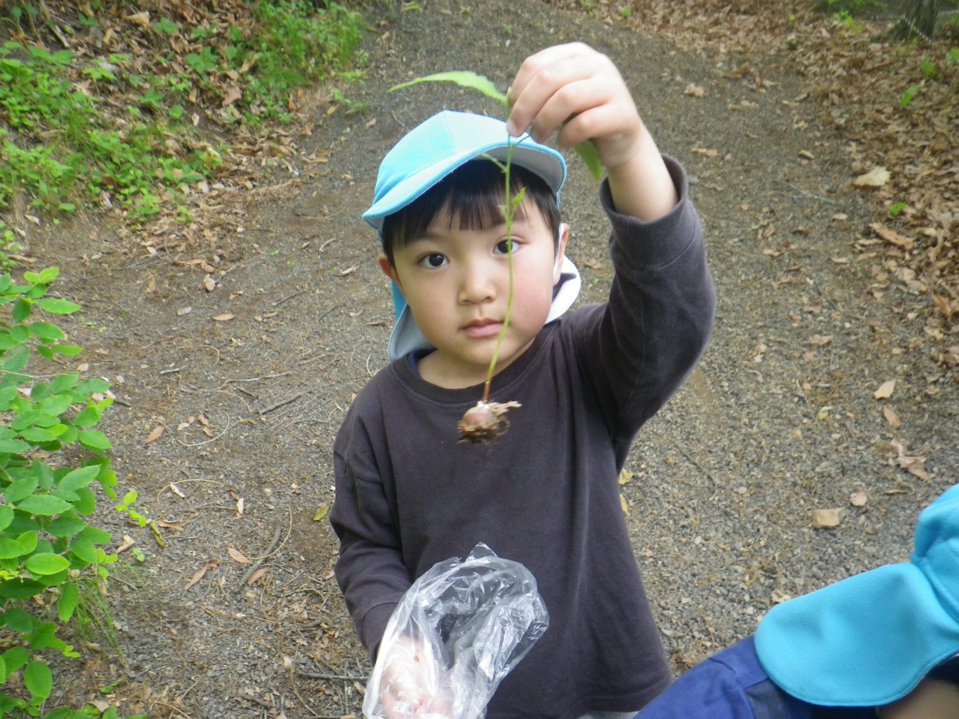 普段から山で遊んでいる年長児がリードしながら、年中児に色々教えてあげていました。