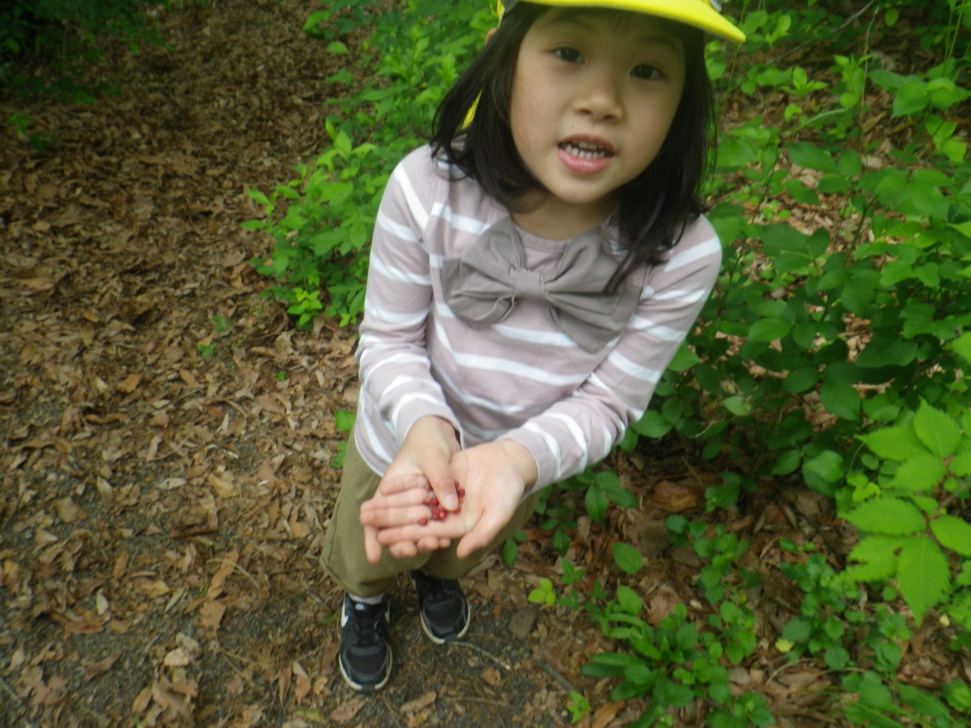 その後はいつもの山遊びです。斜面を登ったり、赤い実を見つけたり。