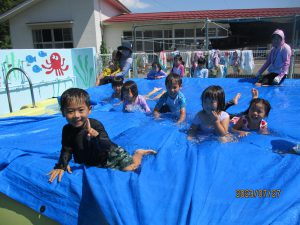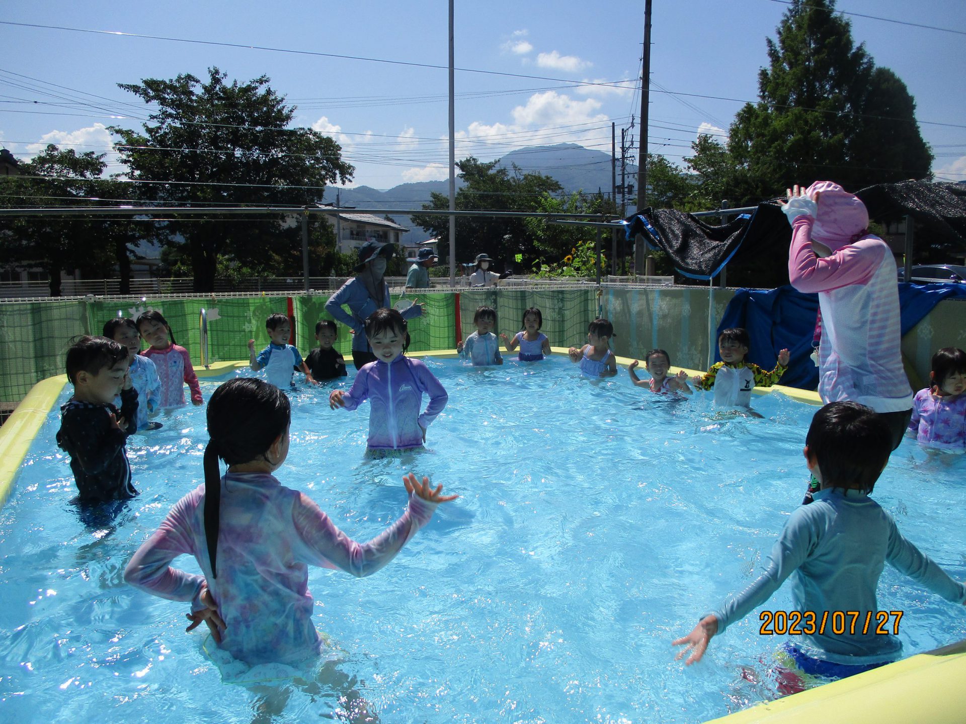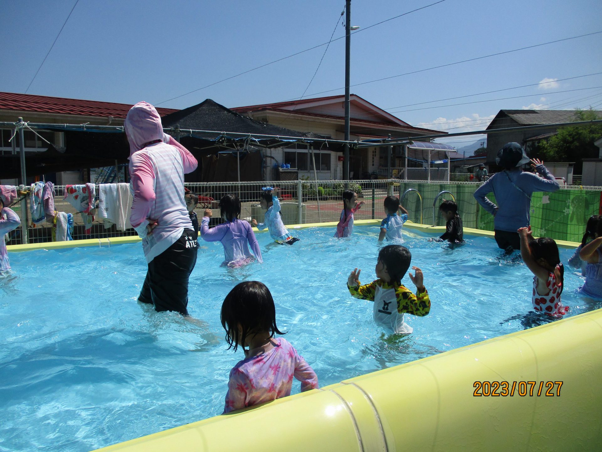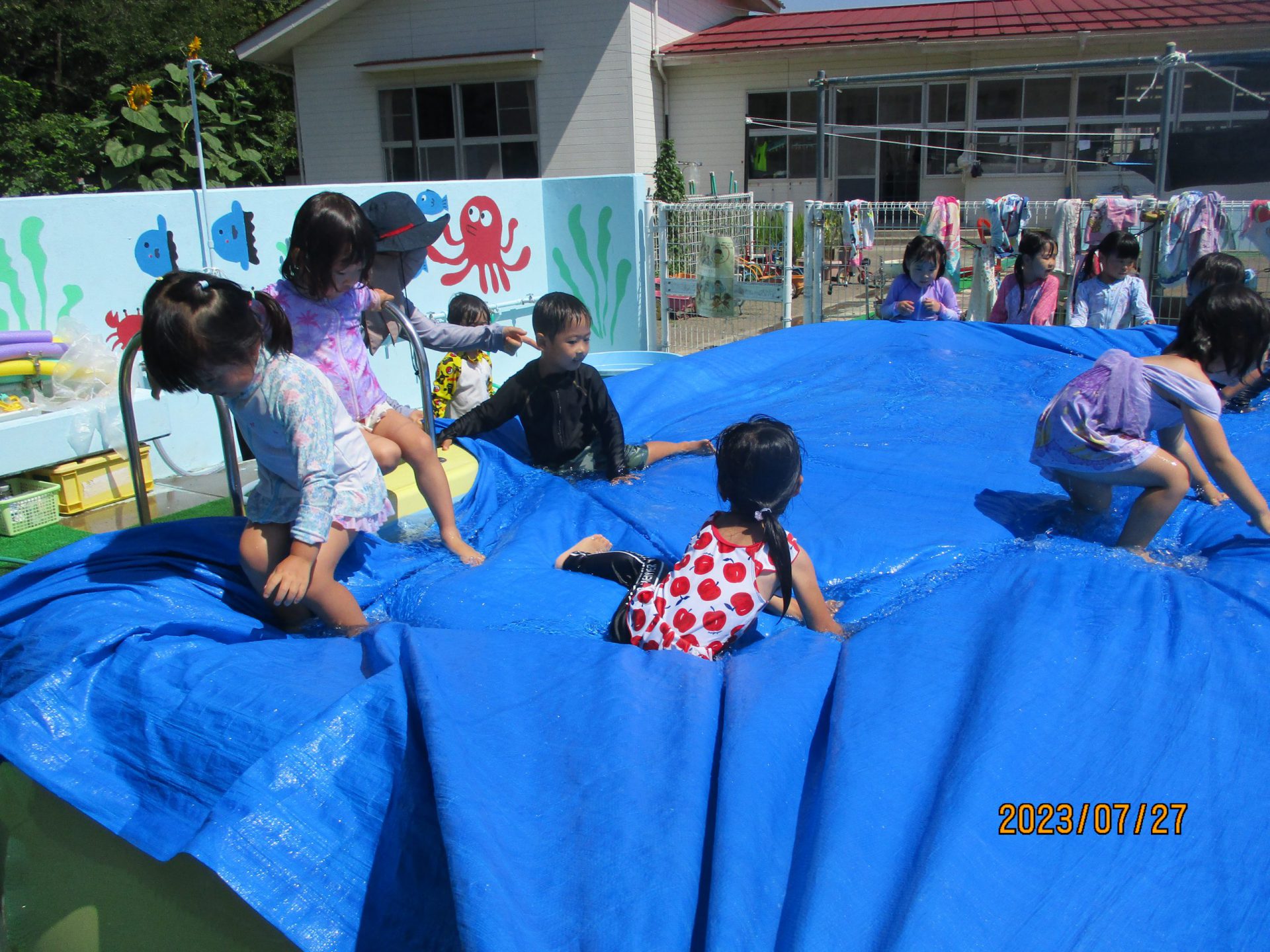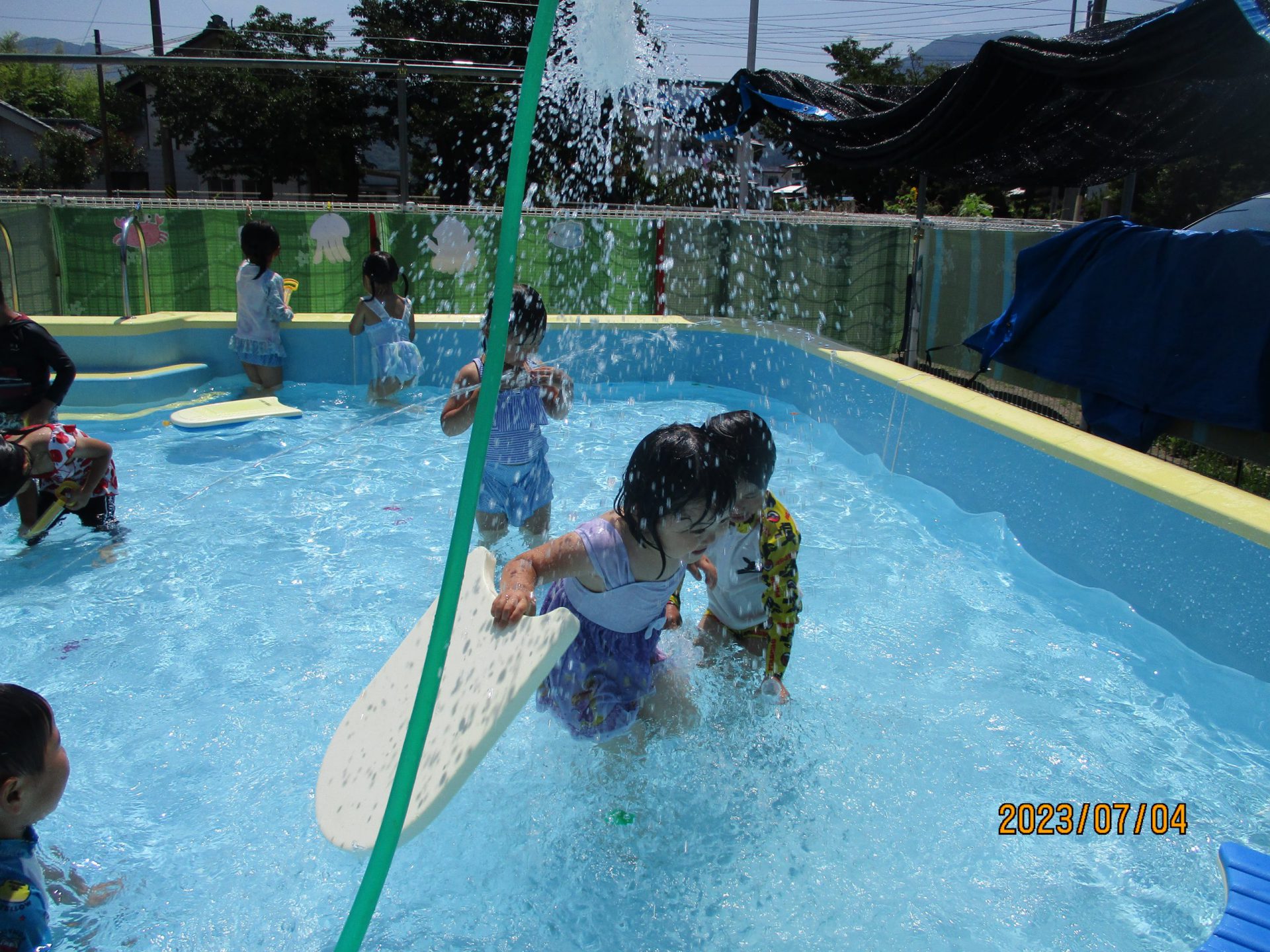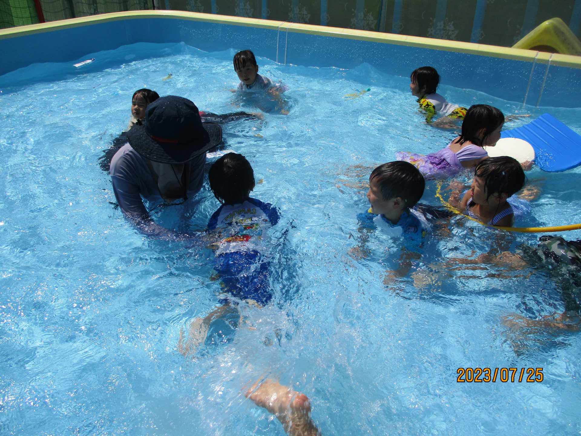 毎日「今日プール入る?」「〇だよ」と楽しみにしているピノキオ組の子ども達。