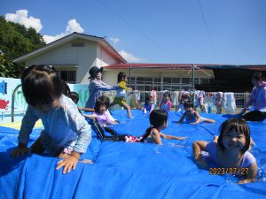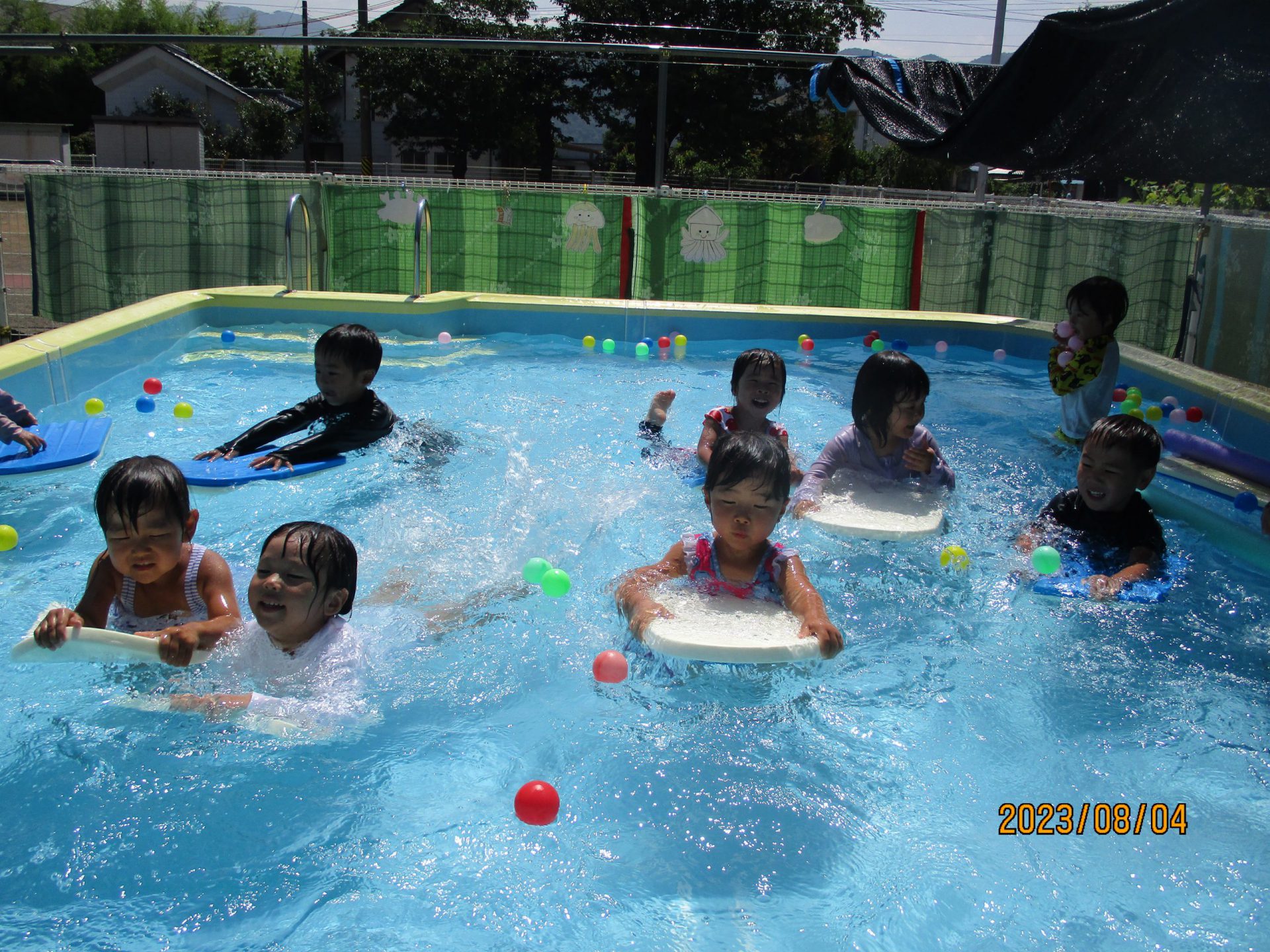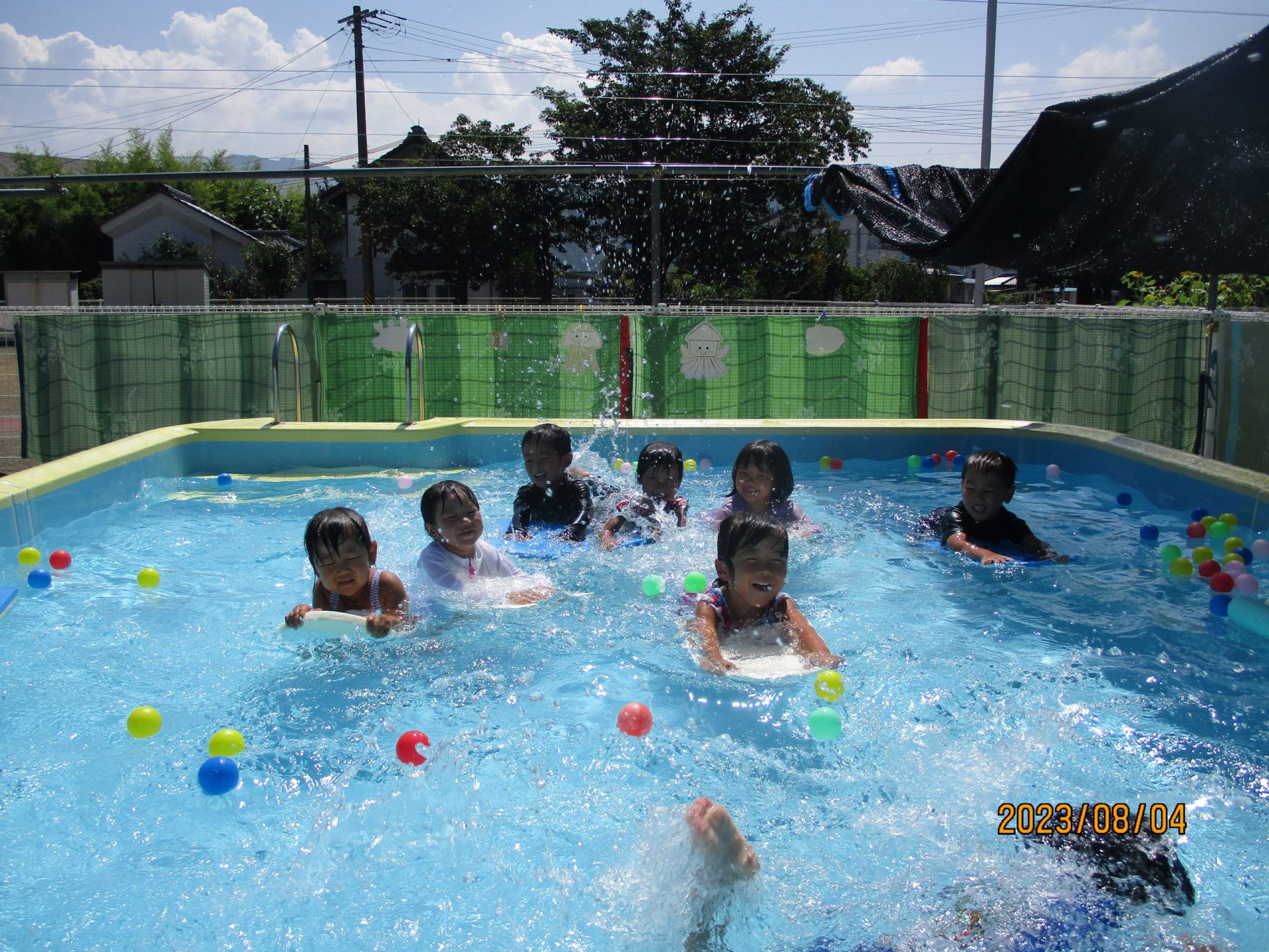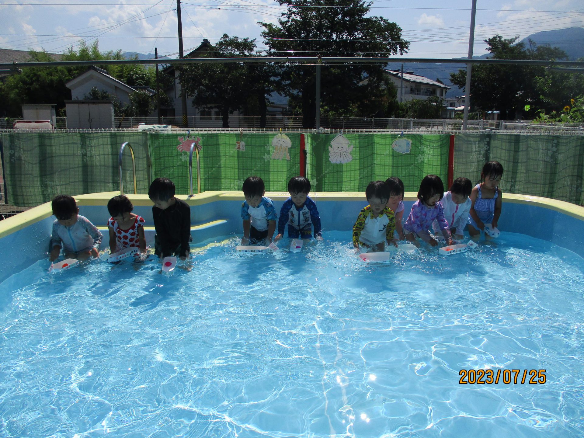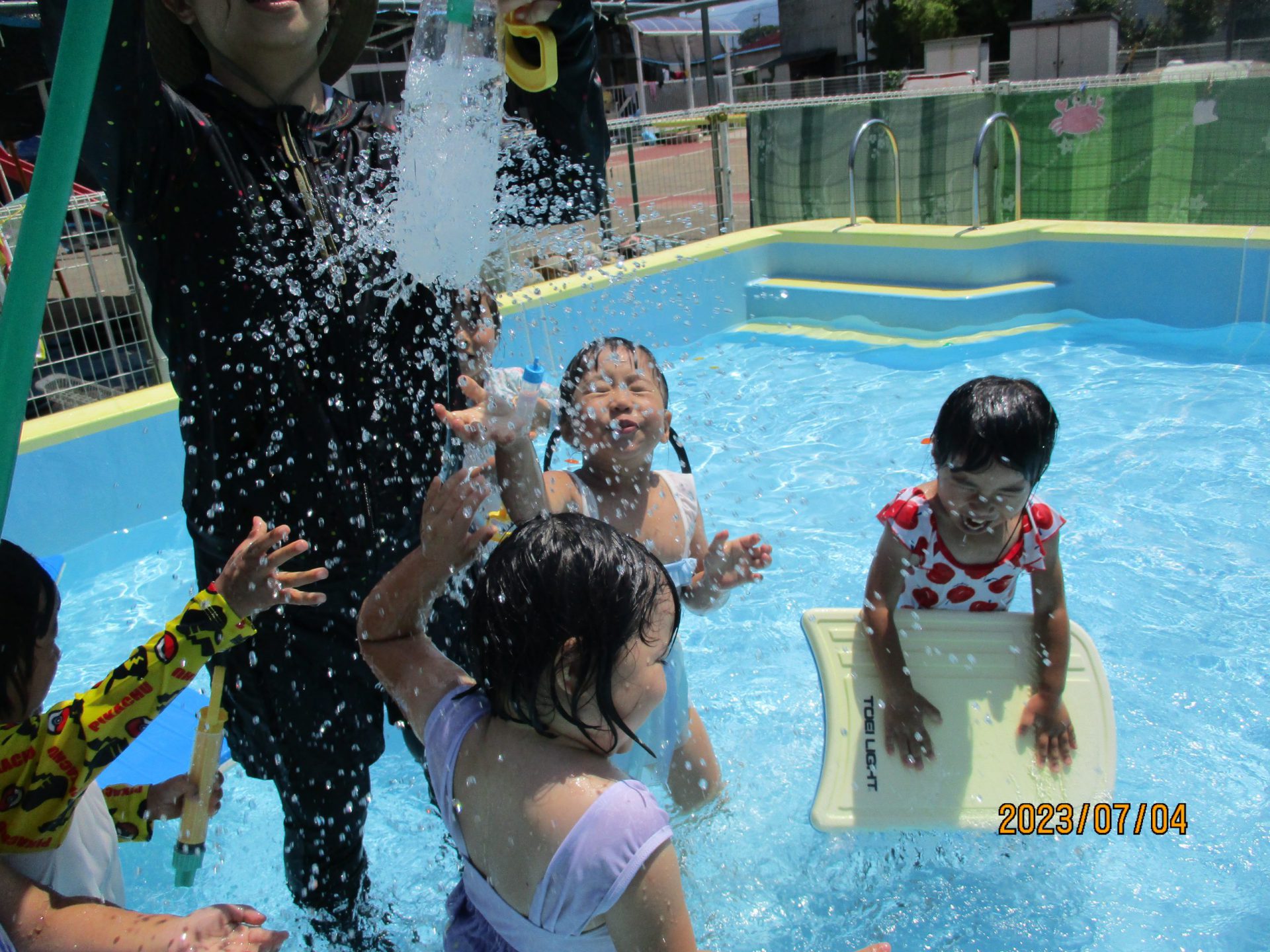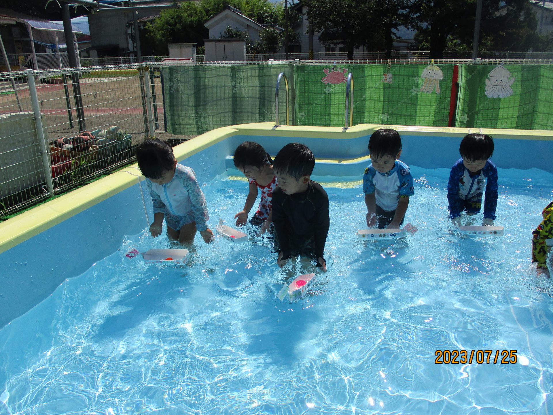 毎日「今日プール入る?」「〇だよ」と楽しみにしているピノキオ組の子ども達。