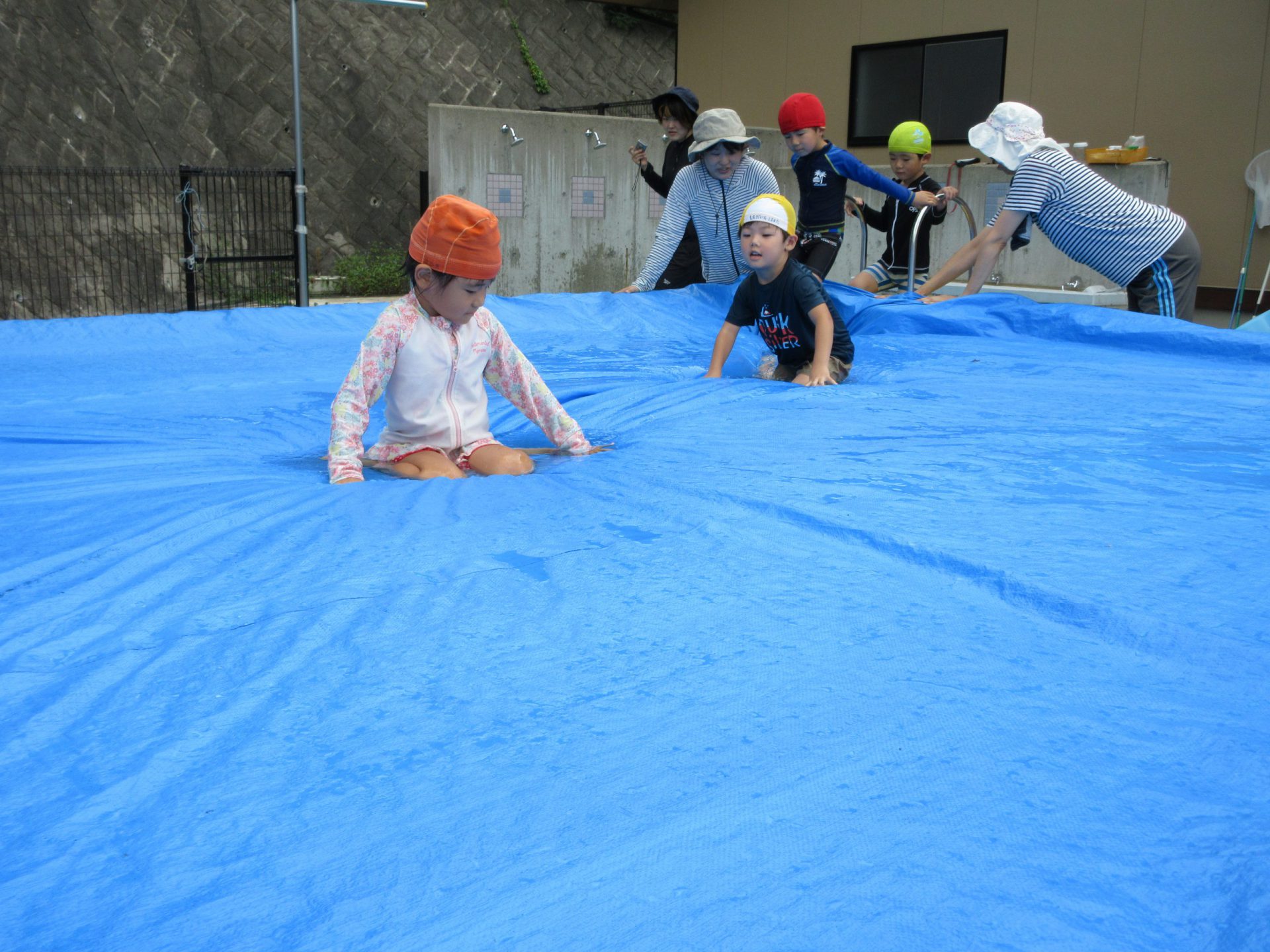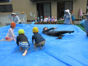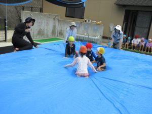 最後は、みんなでブルーシートに乗ってドッボーン!!!