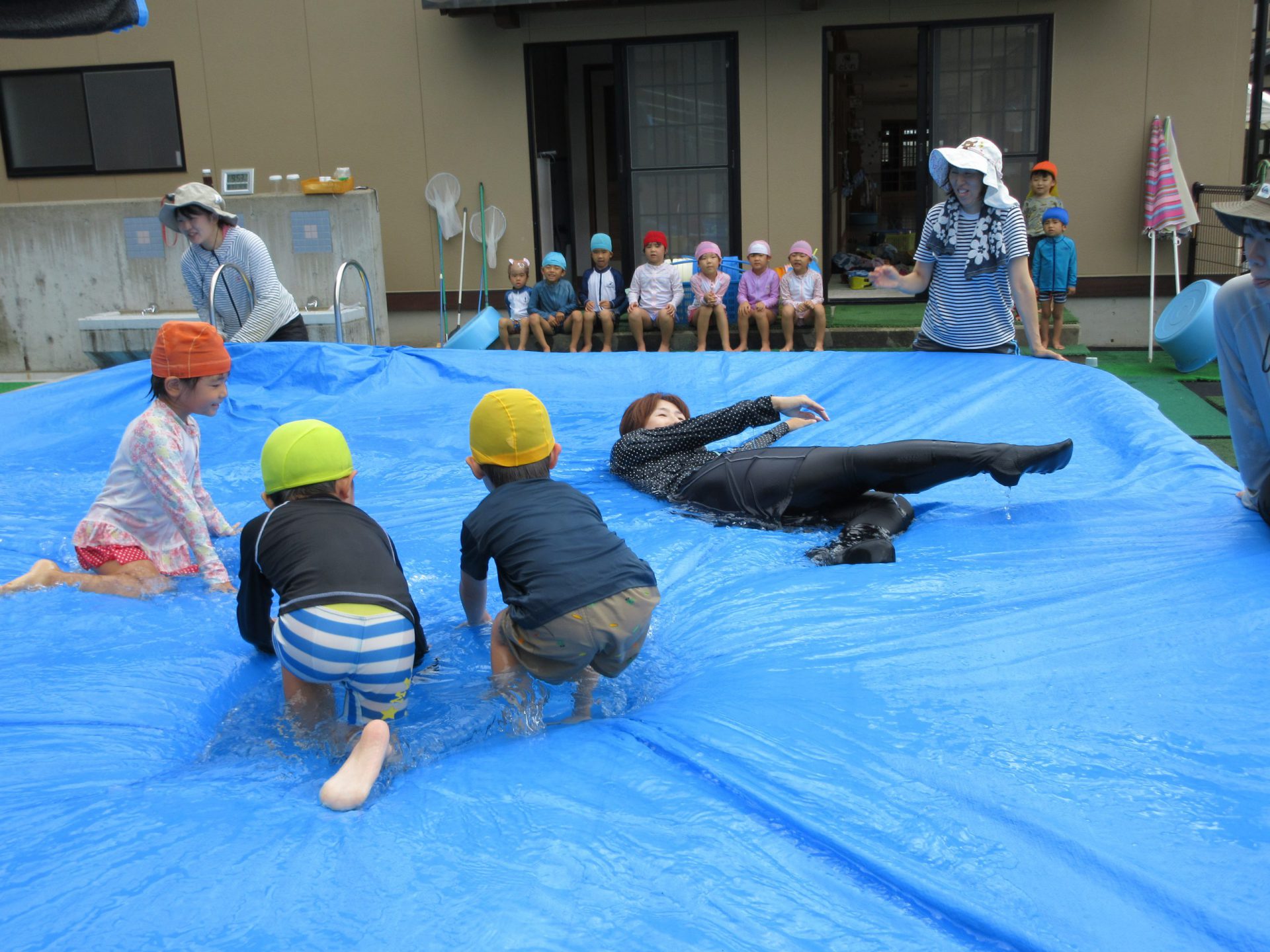 ウォーターベッドが終わった後は、たっぷりのお水が入ったプールで泳いで遊びました!