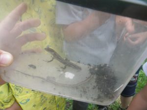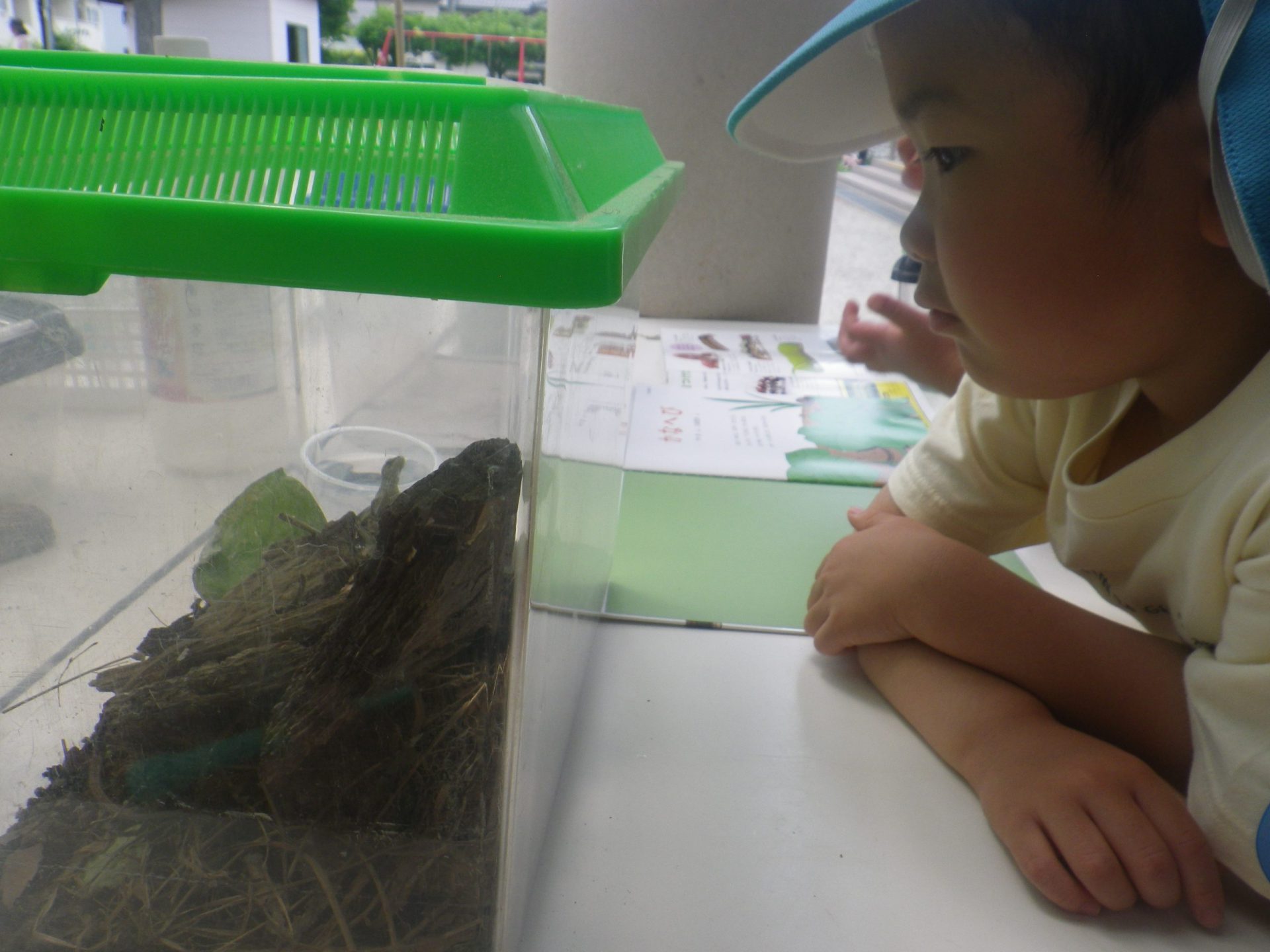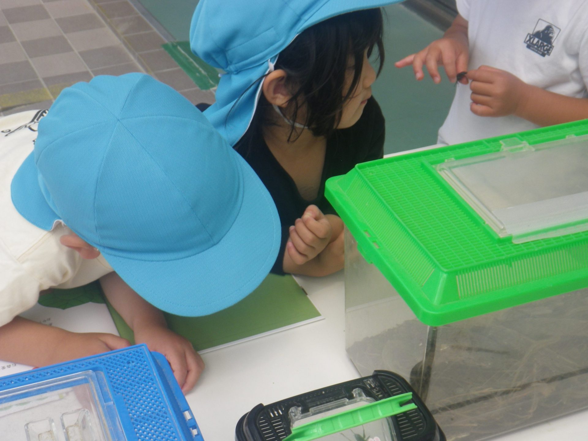 「この青い尻尾は日本トカゲだよ。」と カナヘビにも他の種類がいることを知り、大きさや色を見比べて会話が弾みました。
