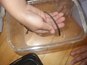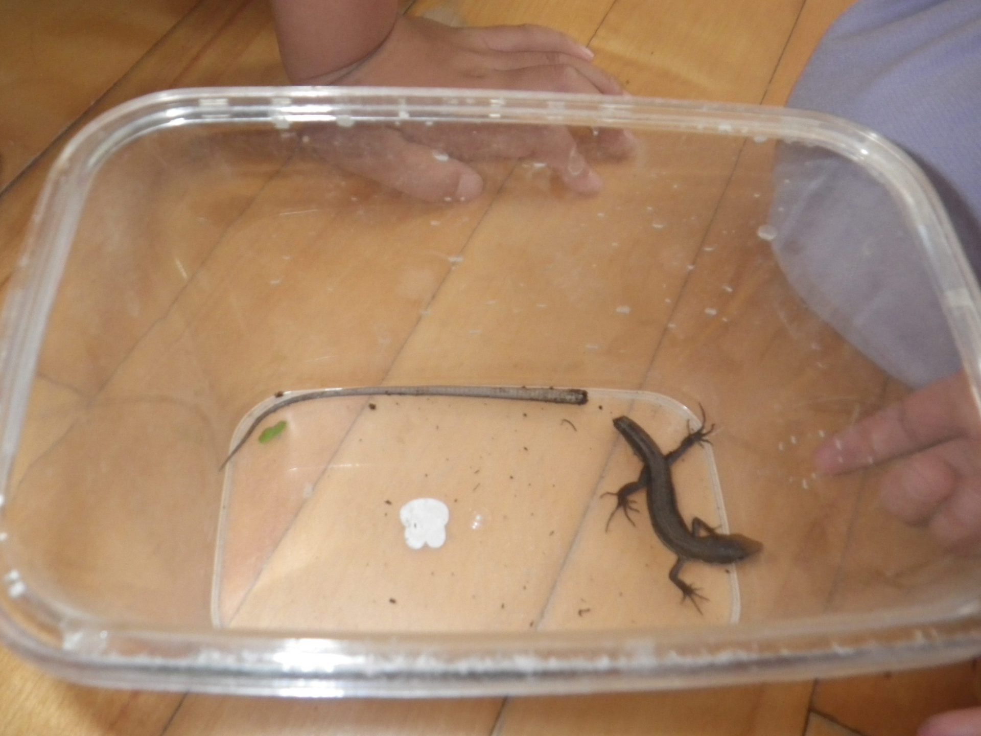 「ミミズみたいだね。」「初めて尻尾が切れたの見た!」「図鑑と同じだったね。」「この後、どうなるんだろう?」