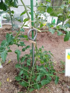 「見て見て!! トマトの花も黄色なんだね!!」「黄色いトマトも赤色トマトも、お花は黄色なんだね」
