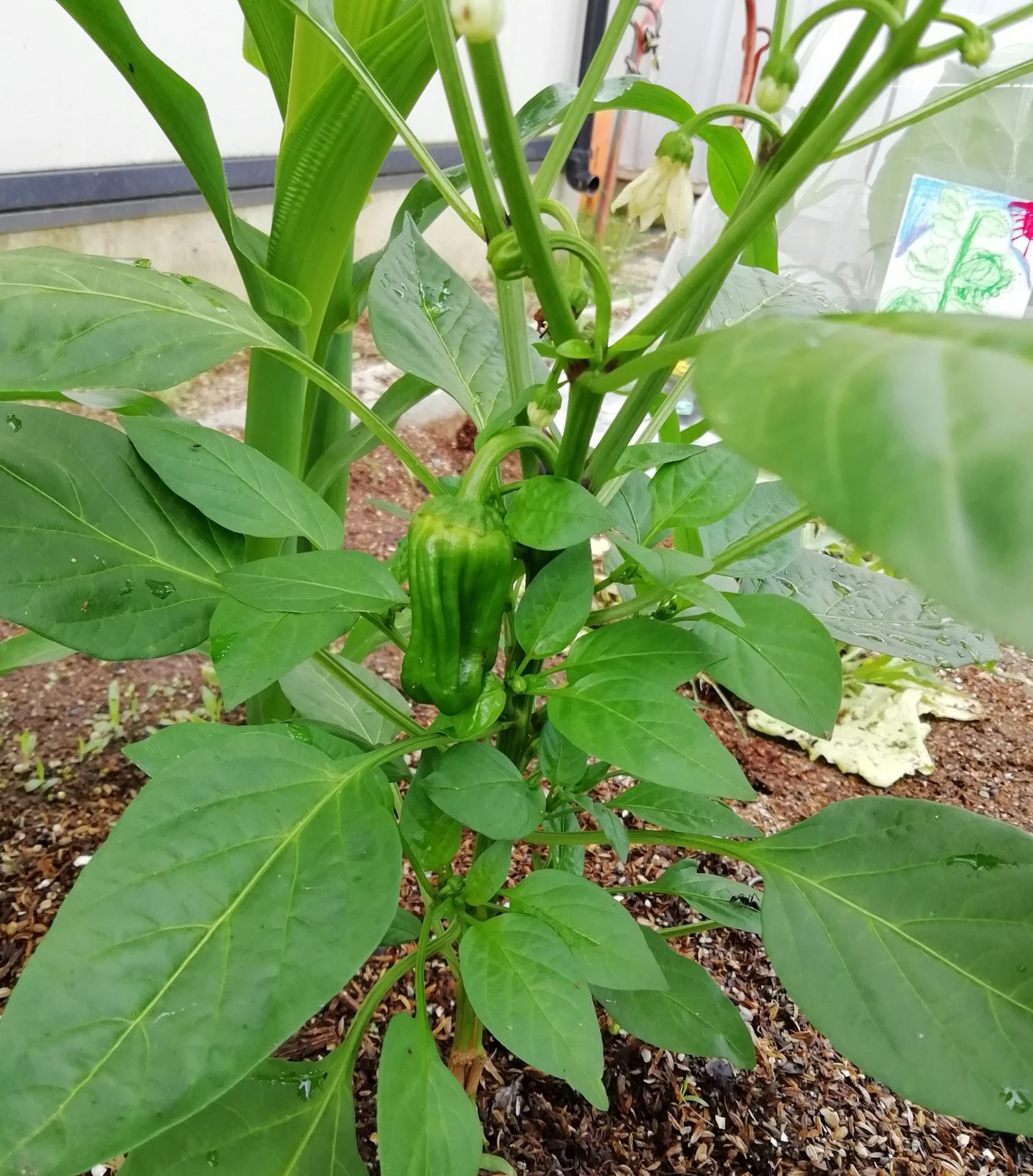 ピーマンの苗を植えるときに葉っぱをこすってみると・・・「ぴーまんにの匂いする!!」と大発見!!