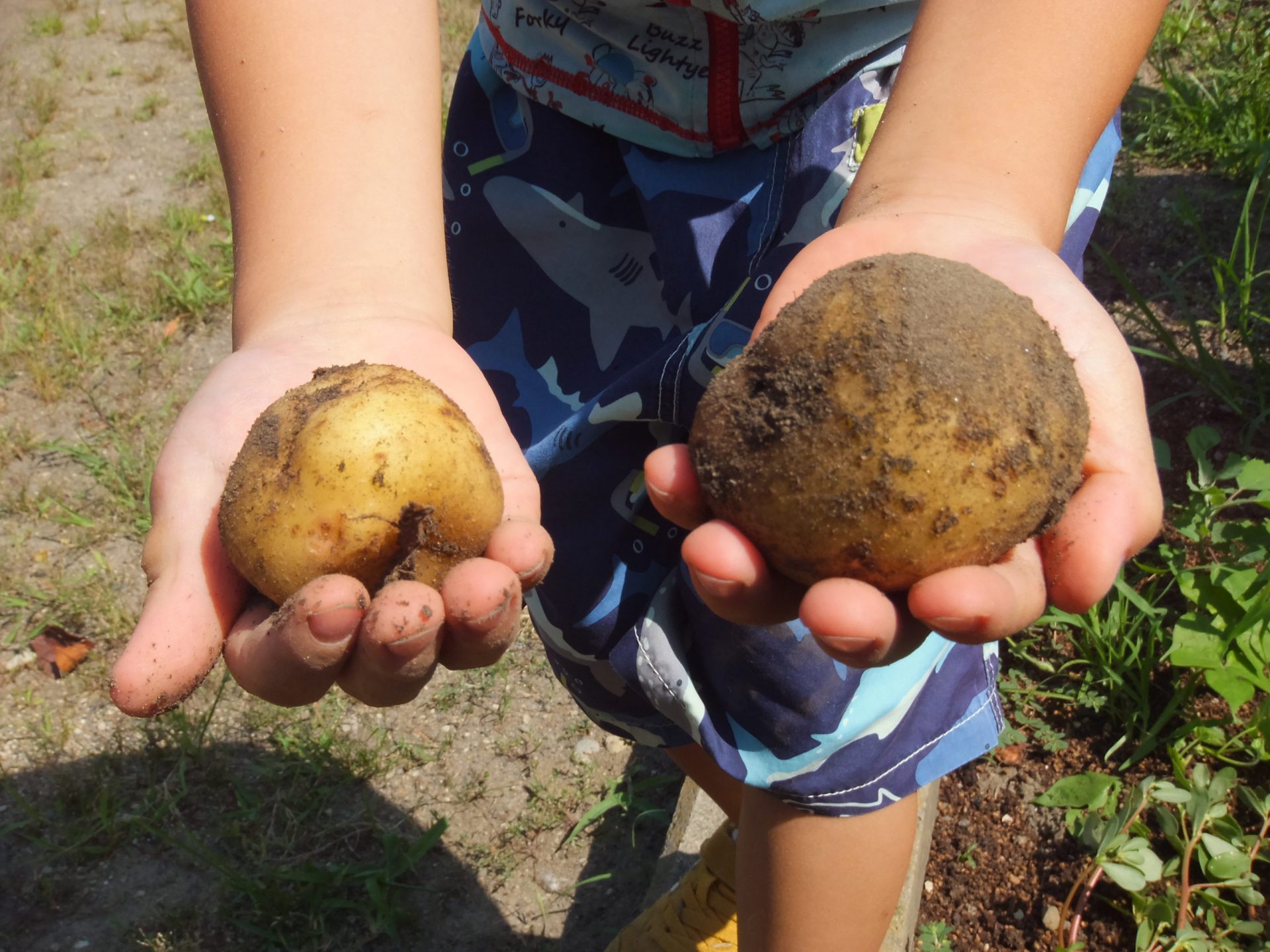 4月に植えたじゃがいもが収穫の時期を迎えました。