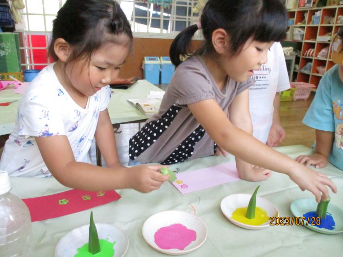 ・スタンプ遊びを通して、野菜を食べることが苦手な子も、実際に触れる中で興味・関心を持つきっかけになってほしいと考えています。また、食べるだけでなく野菜を使って遊ぶ楽しさを感じてほしいと願っています。