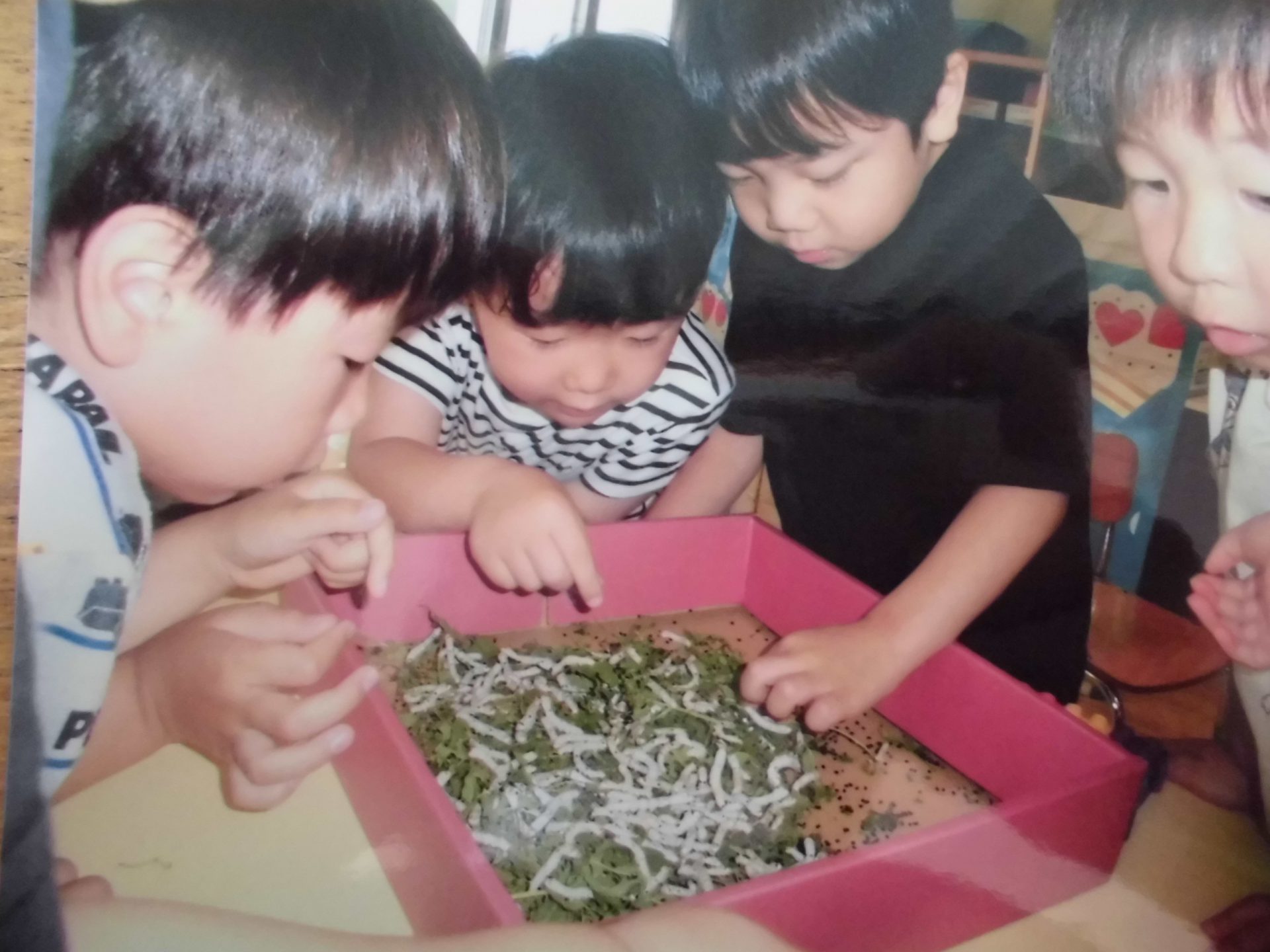 生き物を飼っても生かすことが難しかったり、気持ち悪いと言って踏んでしまったりすることがある子どもたちの姿を見て考えた担任は、蚕を飼うことにしました。