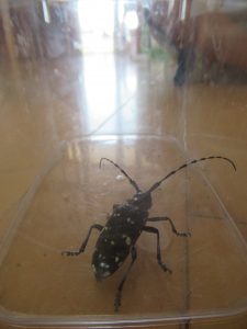 畑では野菜だけでなく、カミキリ虫も見つけました