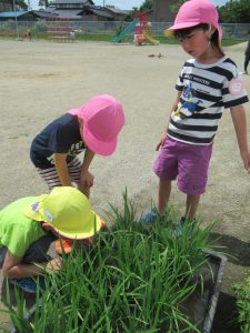畑や田んぼの活動を通して育てる楽しみや収穫の喜びなど食への関心が深まってきたように思います。そして、食だけではなく田畑は、虫や小動物に出会える場にもなっています。体験を通して色々なことに興味関心を広げていって欲しいなと思います。