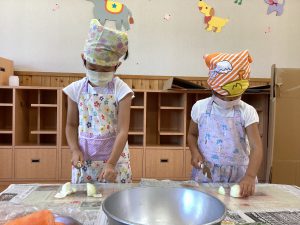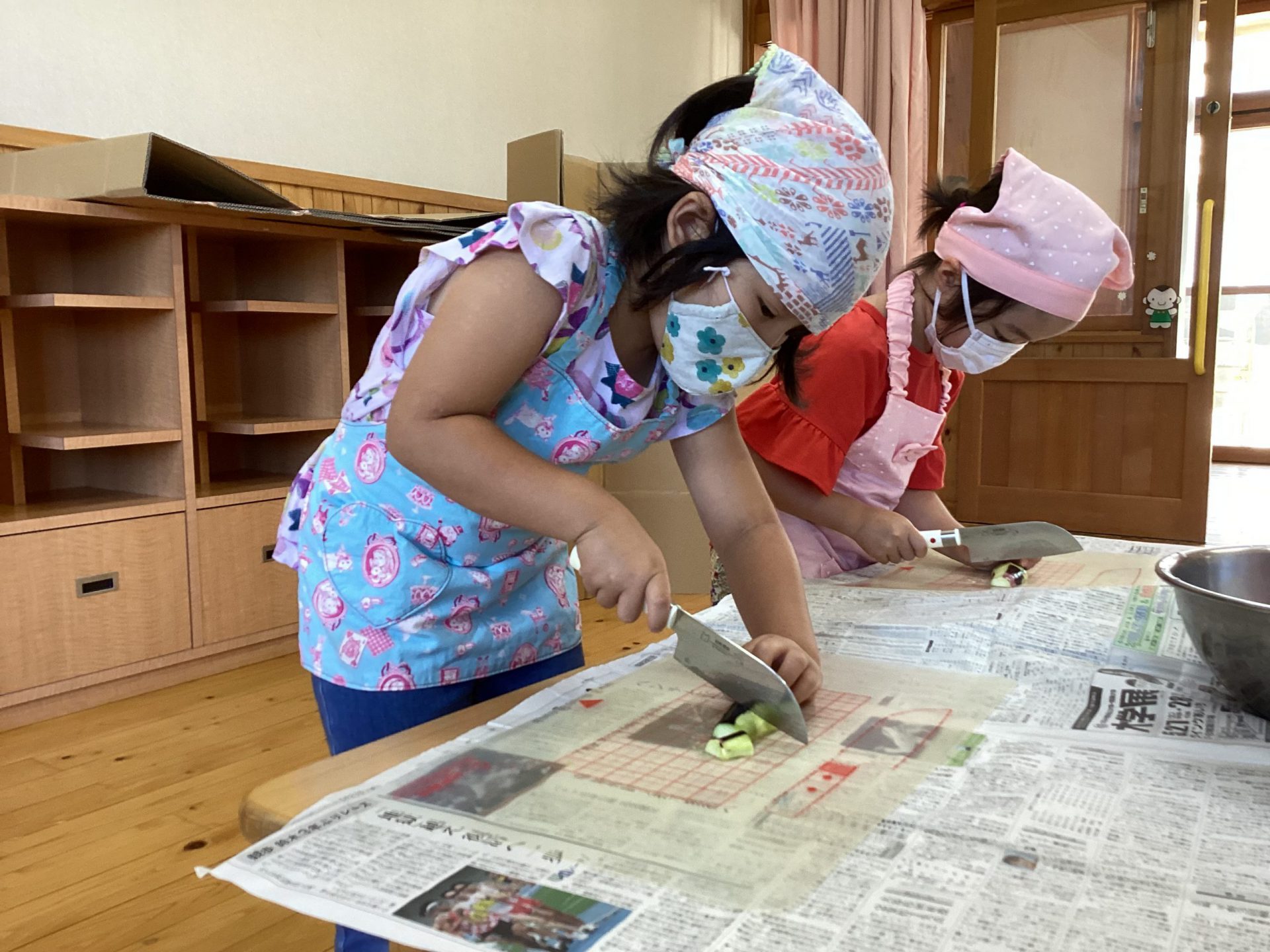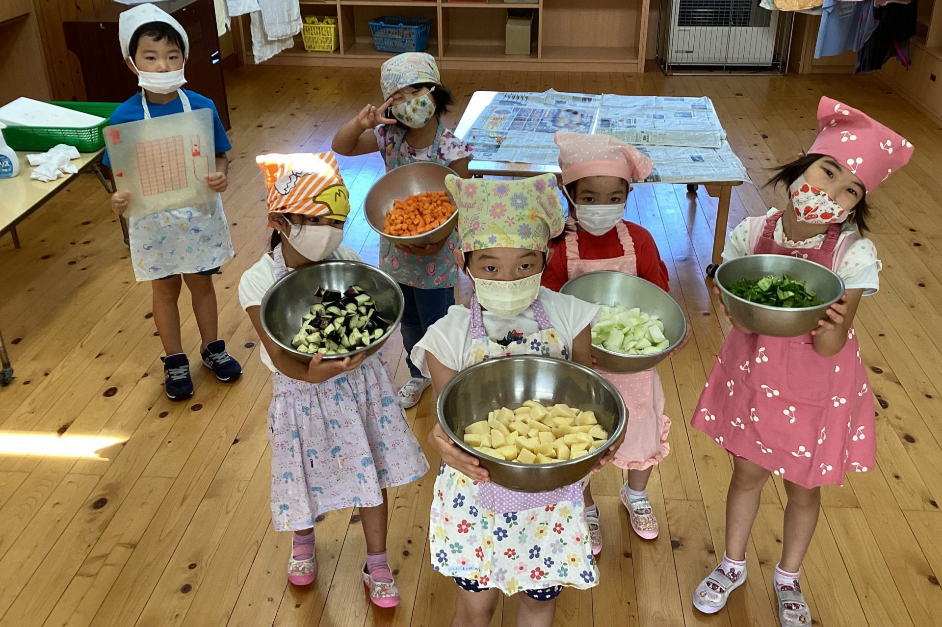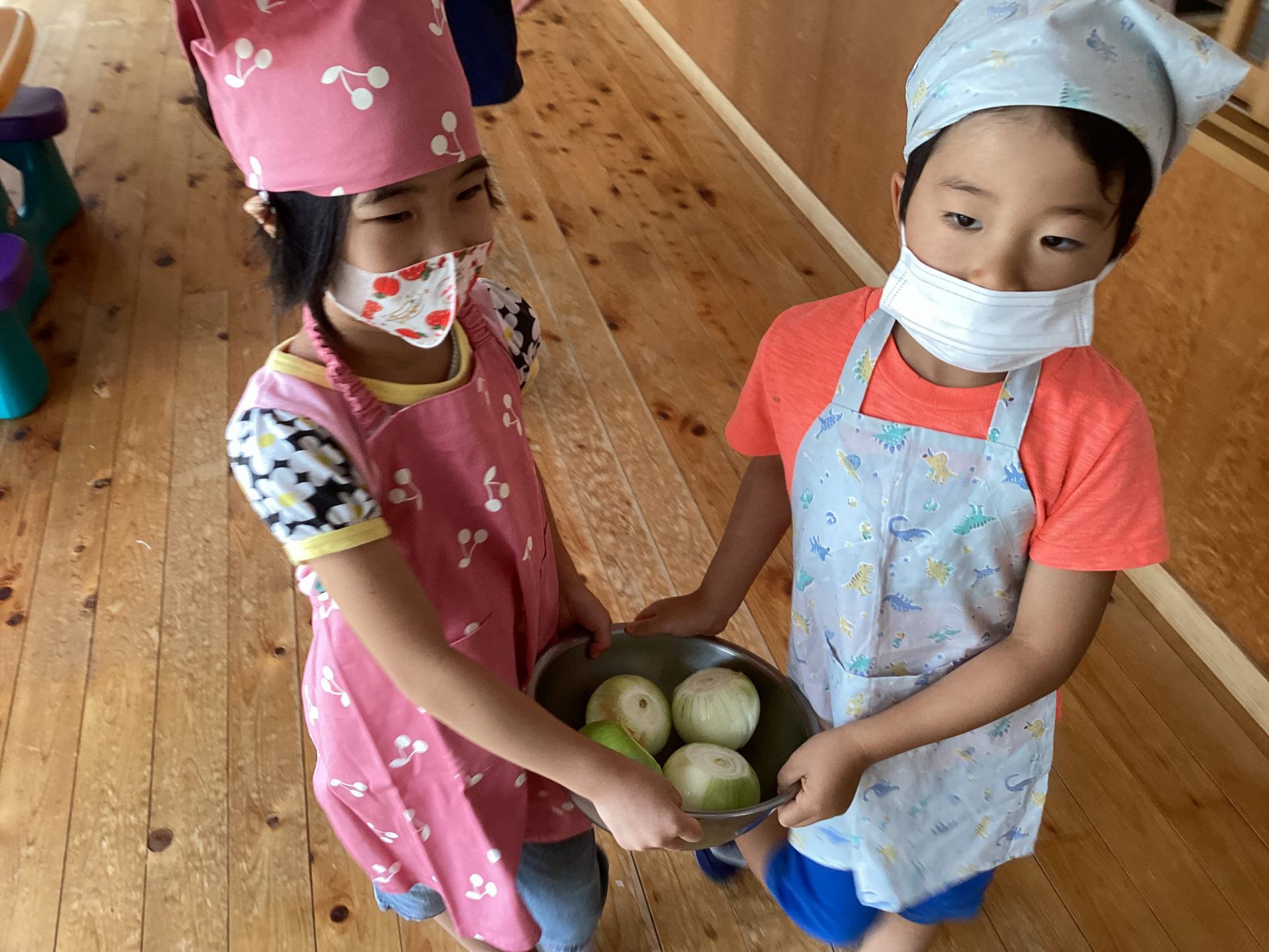 ・『夏の収穫祭でカレーを食べたい』という思いから、自分たちで育て収穫した野菜を調理して作ったカレーは、格別なものとなったようでした。また、友達や先生が喜んで食べてくれる様子を見て、更に喜びも倍増したようでした。次は秋にも収穫祭をします。その時は今回経験した事を活かして、楽しみにし意欲的に取り組めると良いなと思います。