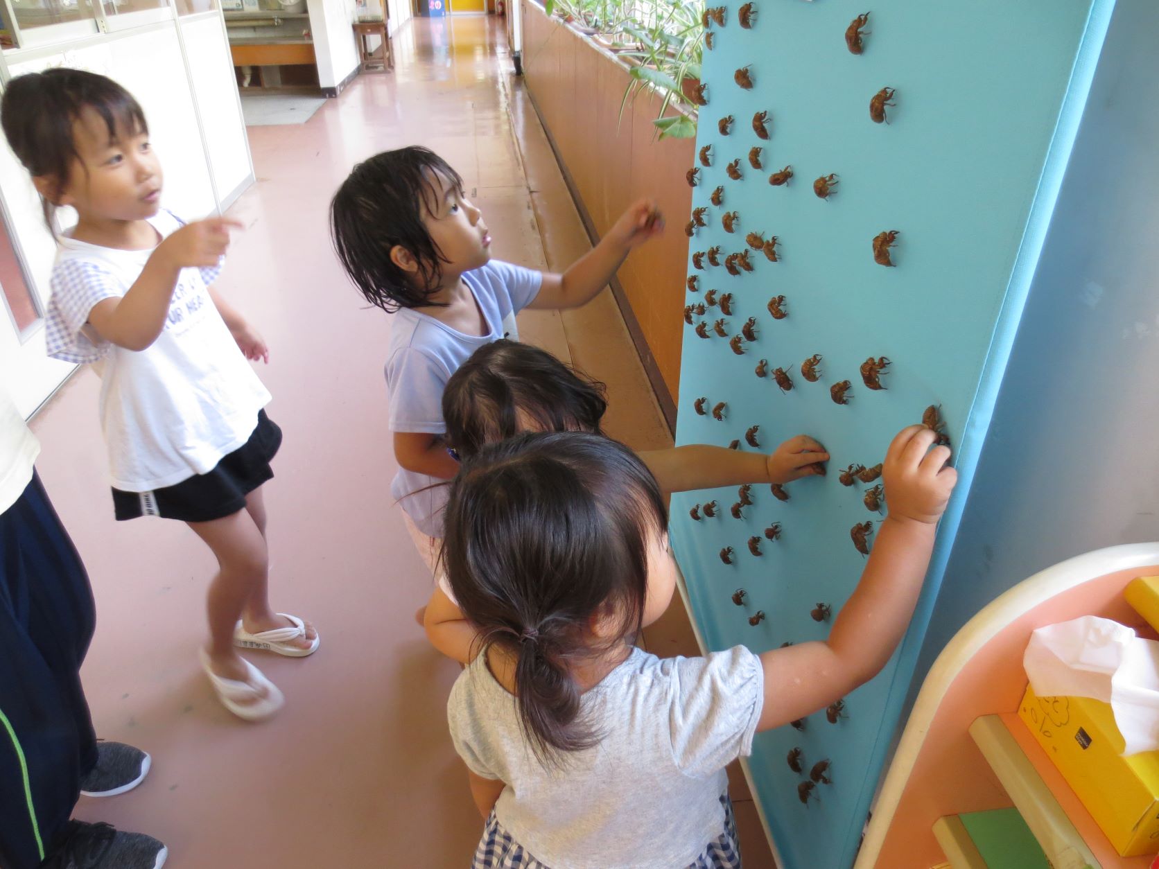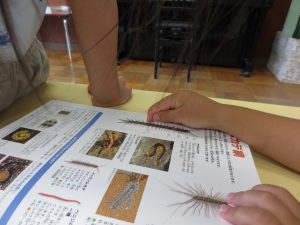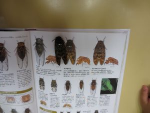 セミの抜け殻を図鑑を見ながら分けて貼っていきます。