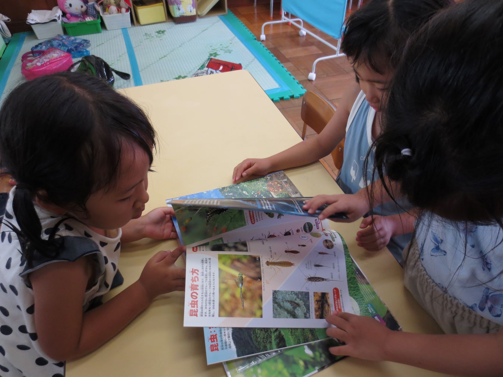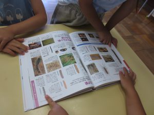 図鑑の生き物が実物大ということに気がついた子供たち。