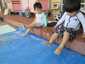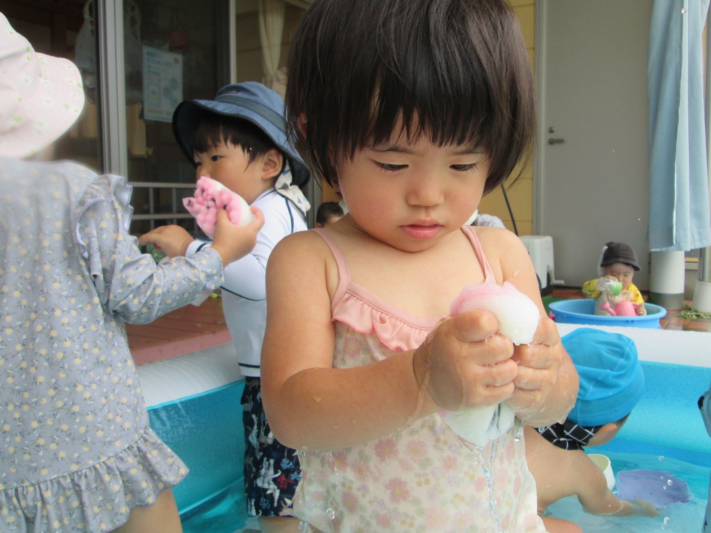 ・この夏、沢山遊ぶ中で水あそび、プール遊びが大好きになってきた子ども達の姿を見て、嬉しく思います。