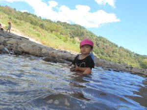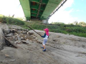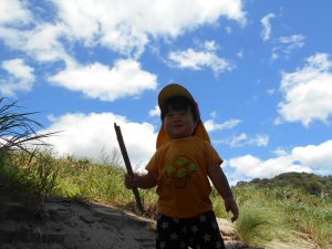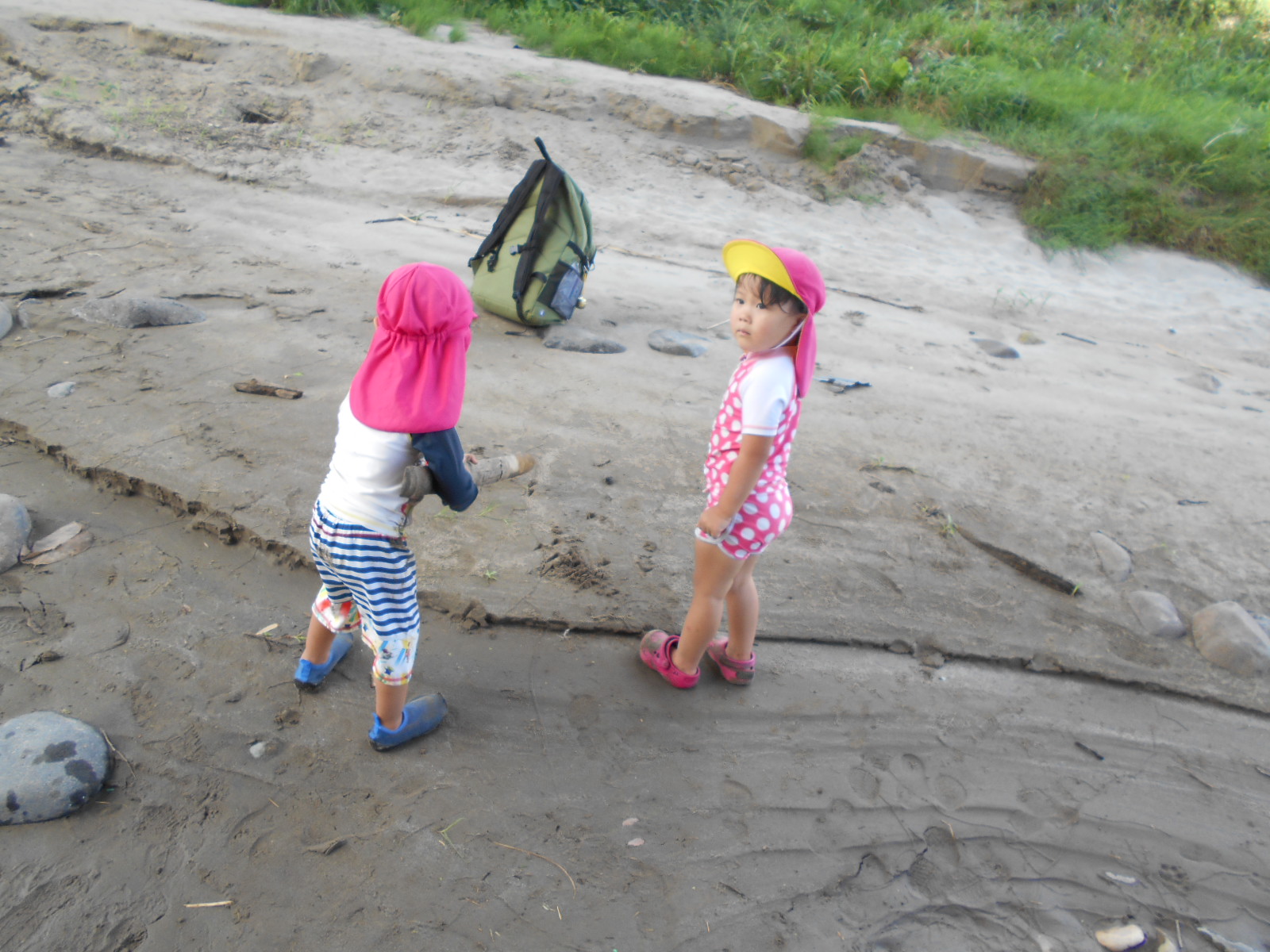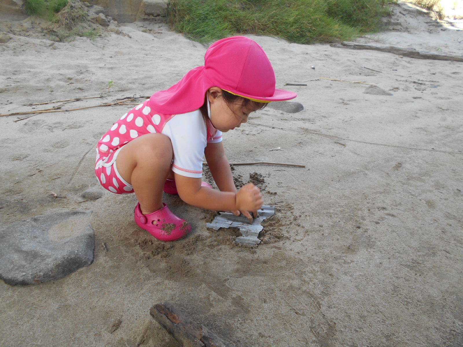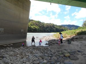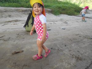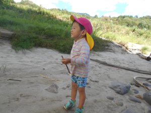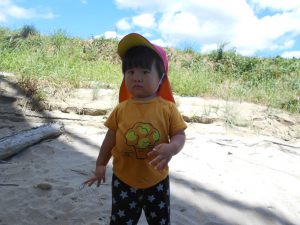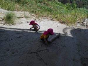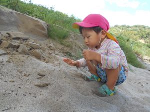 ・遊び終わり、上に上がったとき「ここの砂はさらさらじゃない」(川の横の砂と比べて)