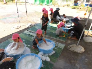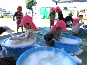 予想通り、子ども達は喜んで泡の感触を楽しんでいました。