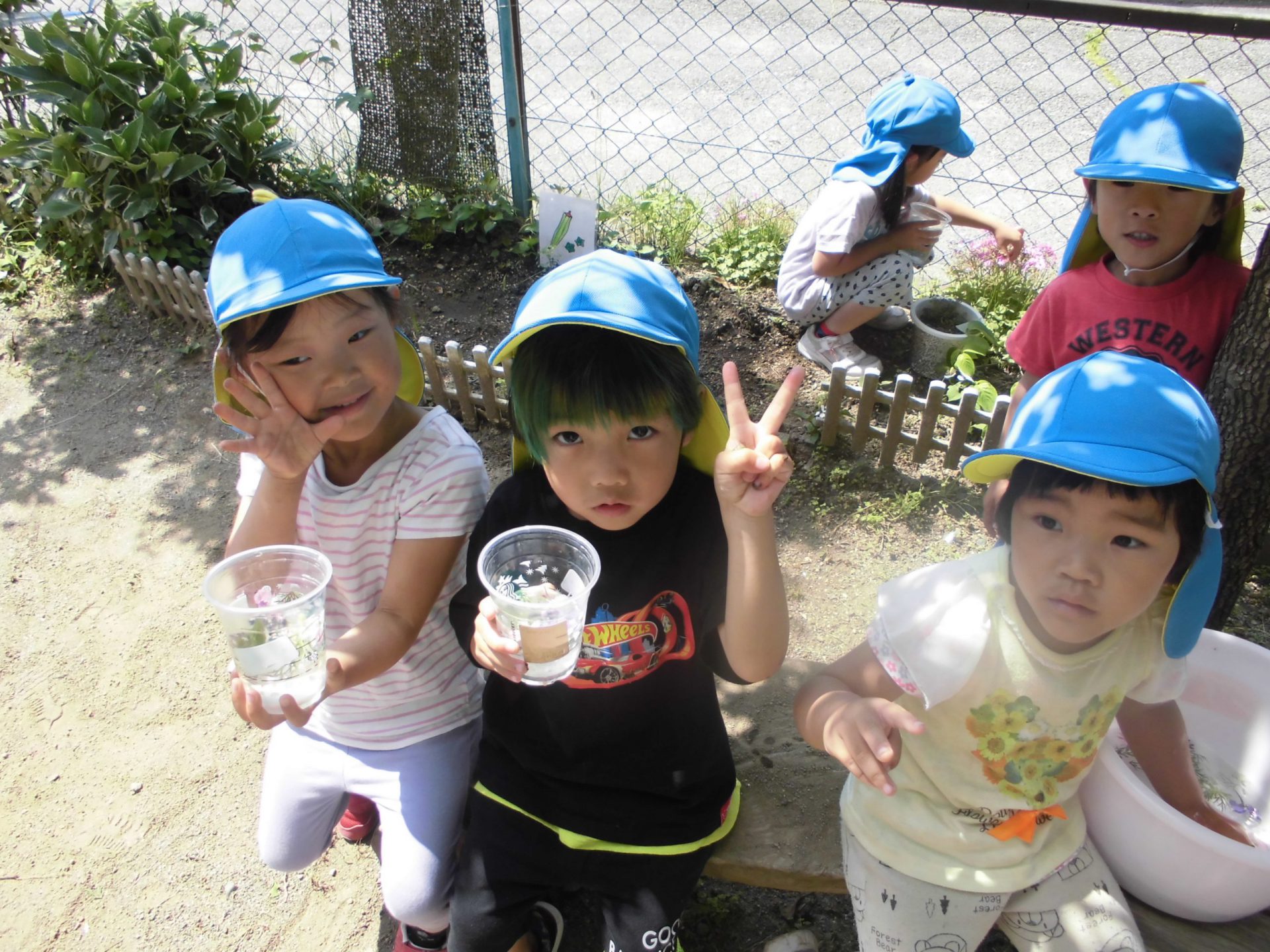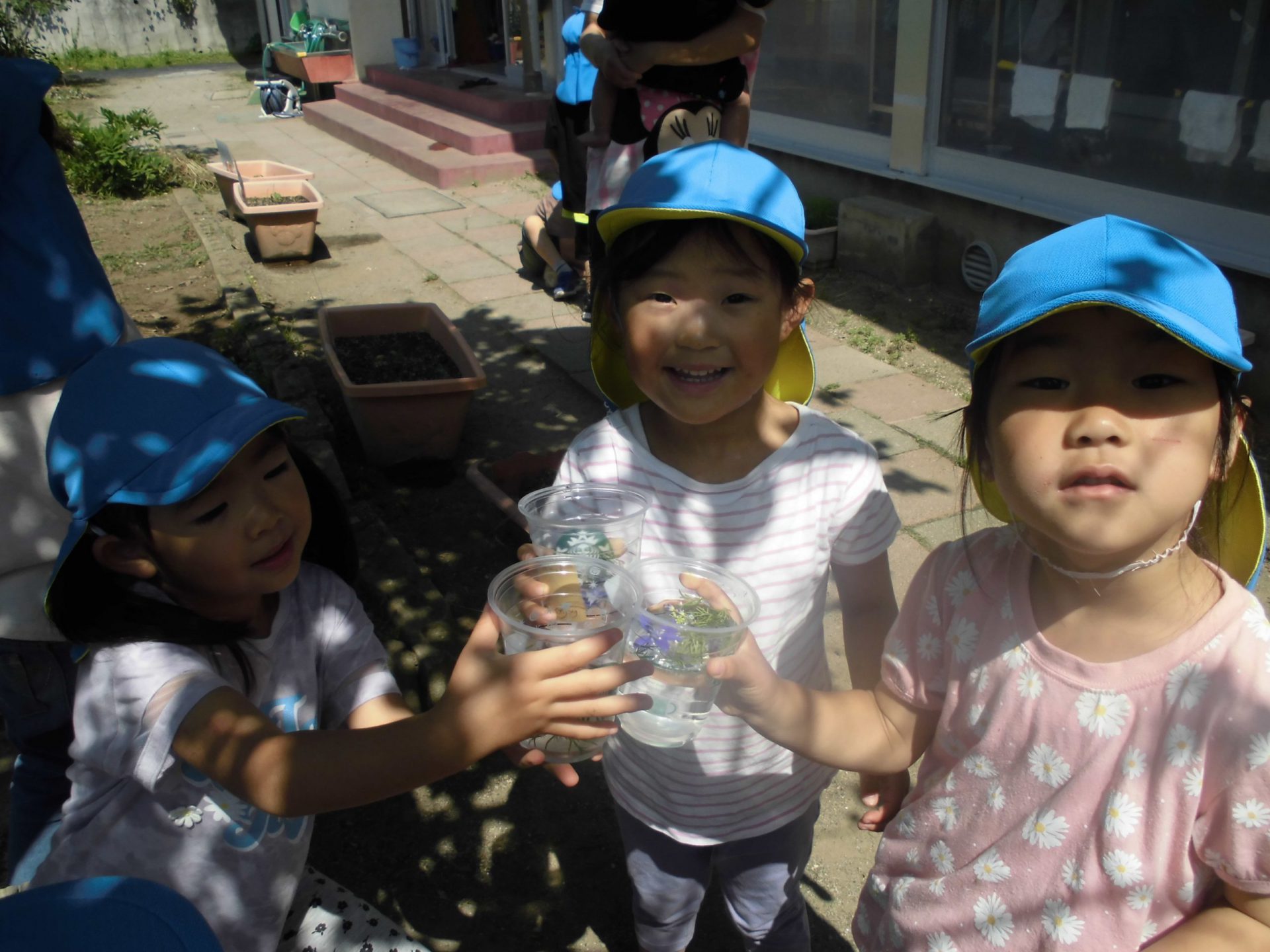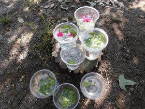 ・草花でジュース屋さんをして、いろいろな匂い、色になったよ。
