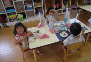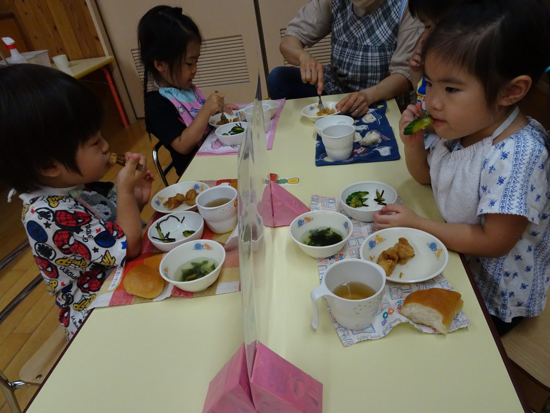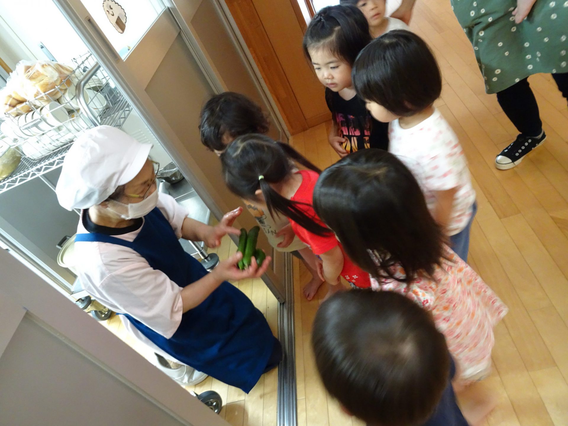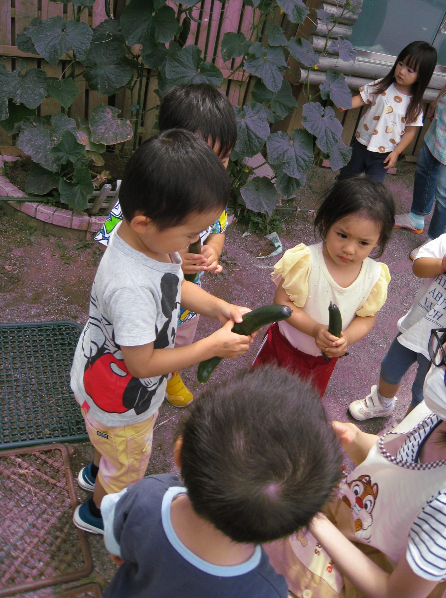 自分たちで育てたきゅうりは特別で、「おいしい~」と夢中になって食べていました。「今日のきゅうりは自分たちで育てたきゅうりかな?」と毎日楽しみにしています♪