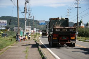 田んぼの横と言えば自然がいっぱいのイメージですが、種芋植えの投稿の時に写ったように、ダンプが行き交う国道脇に畑があります!