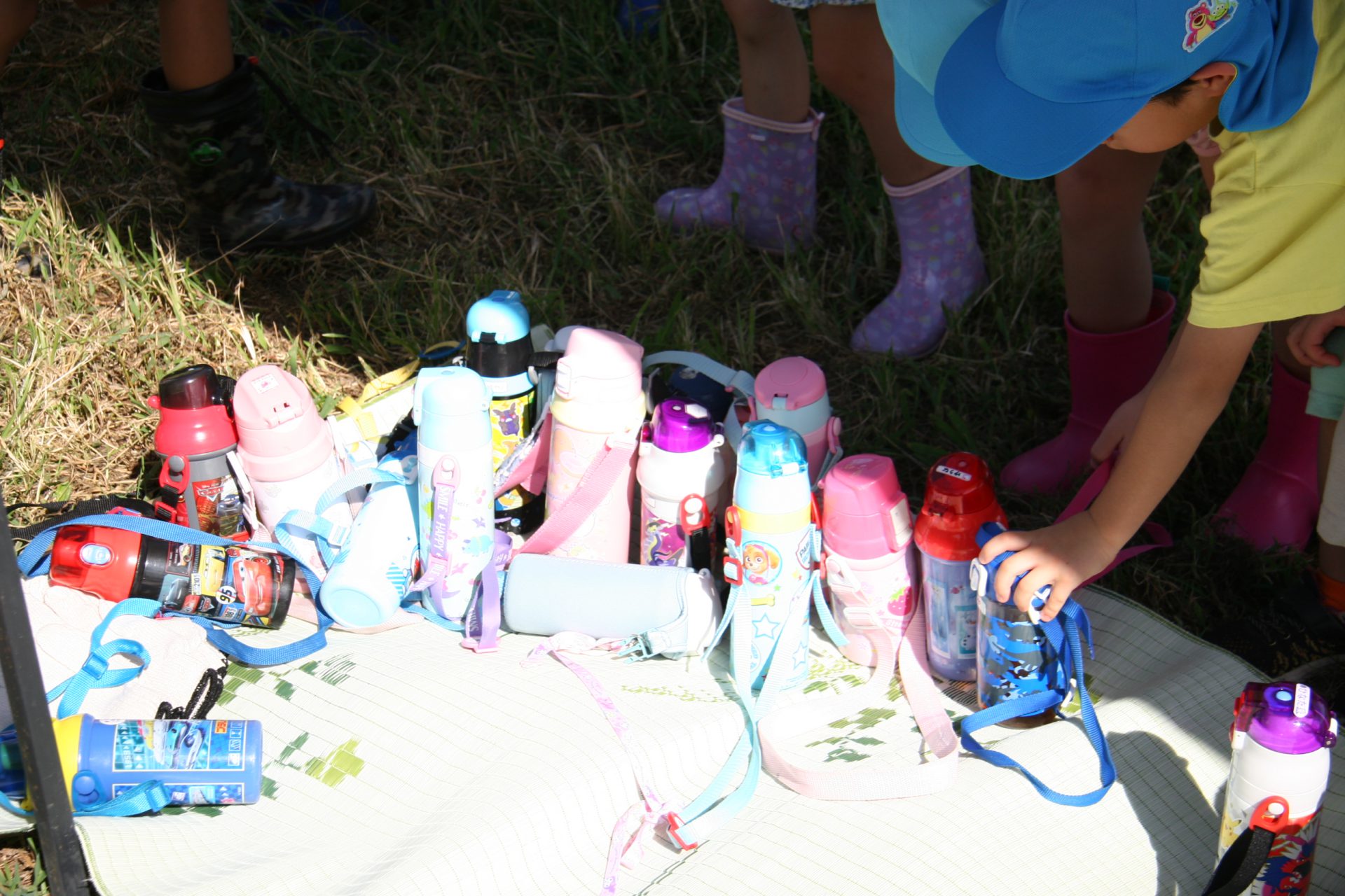 ミールマ~マさんがテントを張っておいてくれました。ドリンクも必須ですね。「あちあち~」