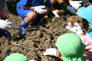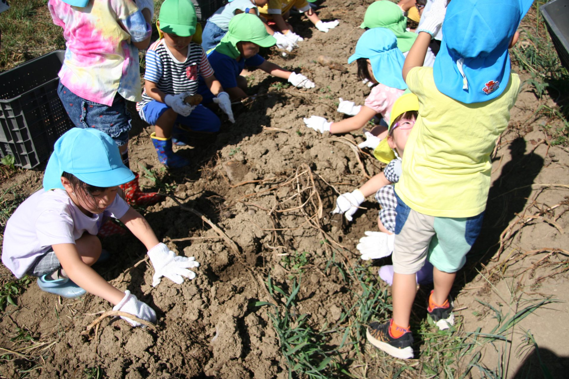 「たくさんあるある~!」 「あ、しんかんせん」「いまはおいもだろ~!」と突っ込みながら楽しいお芋掘りです(暑いけど)