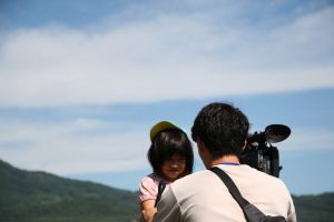お芋も暑そうです・・・ 収穫の後、取材に来ていたケーブルテレビにインタビューされました。(なんて答えていたのかな~)