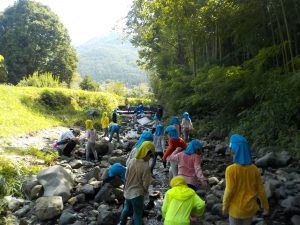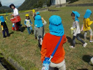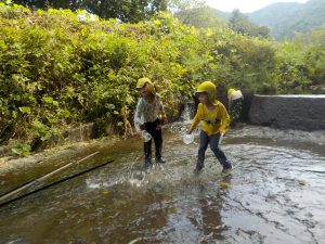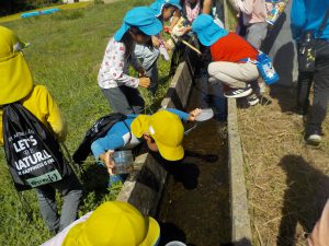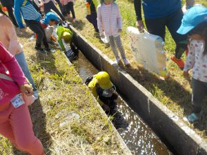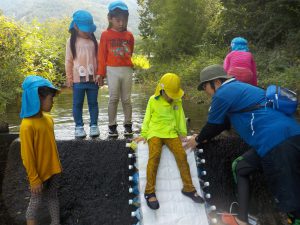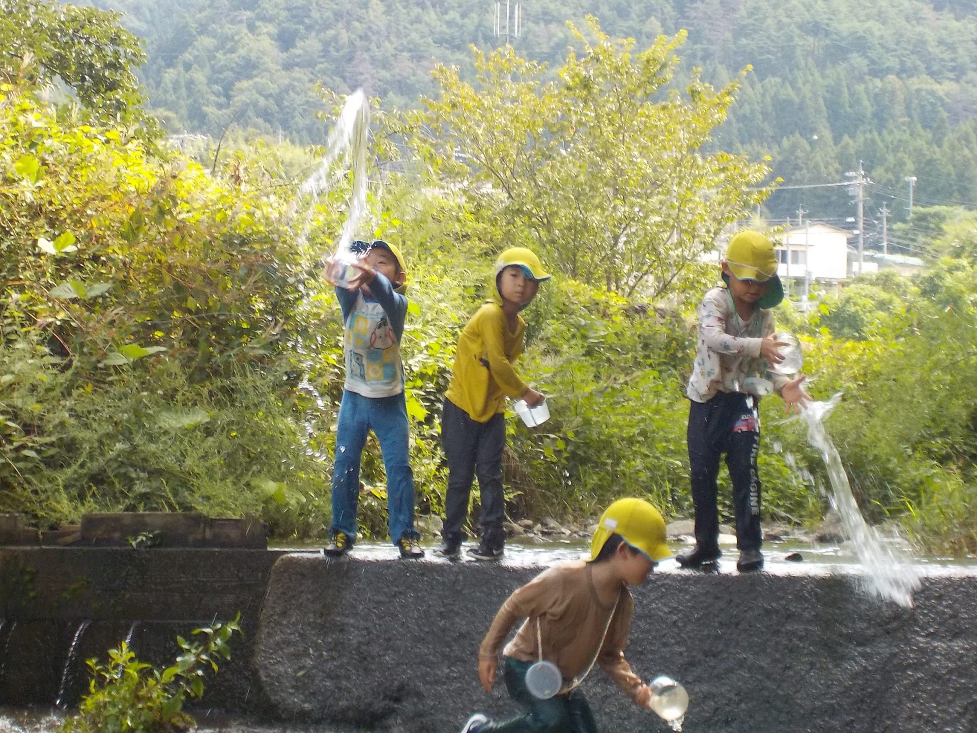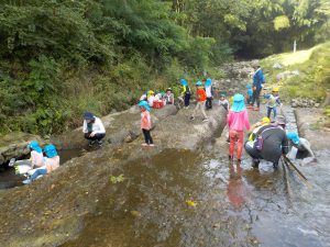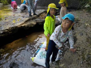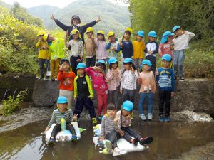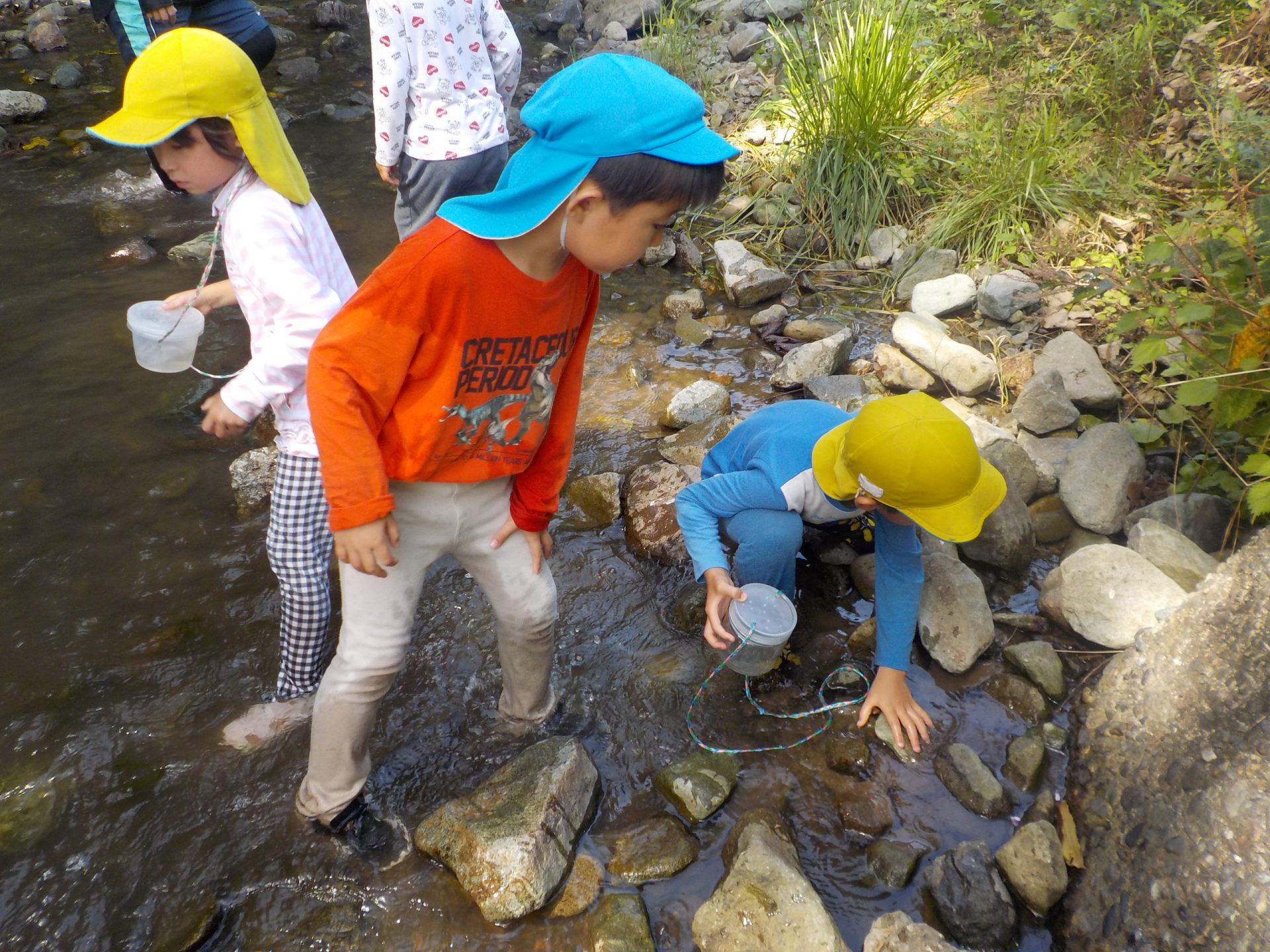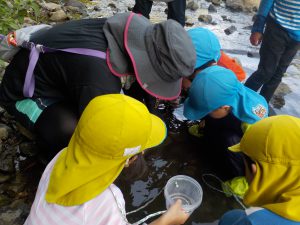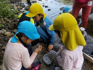 前回から2回目の川遊び。人数の少ない当園の子ども達にとって、良い経験と考え交流を続けて行きたいと考えている。