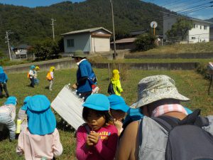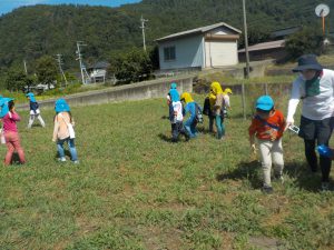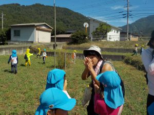 休耕田では・・色々な葉っぱを使ってキジ笛に挑戦!!2度目の東条のお友達はさ~て鳴るのでしょうか!?「ブー」「ぴ~」高音から低音まで色んな音が出たね~さてさてその後ろでは・・・