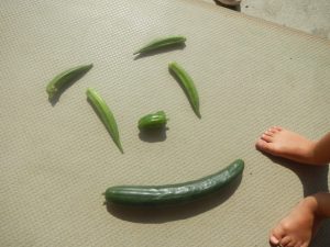 ・野菜並べたら顔ができた〜