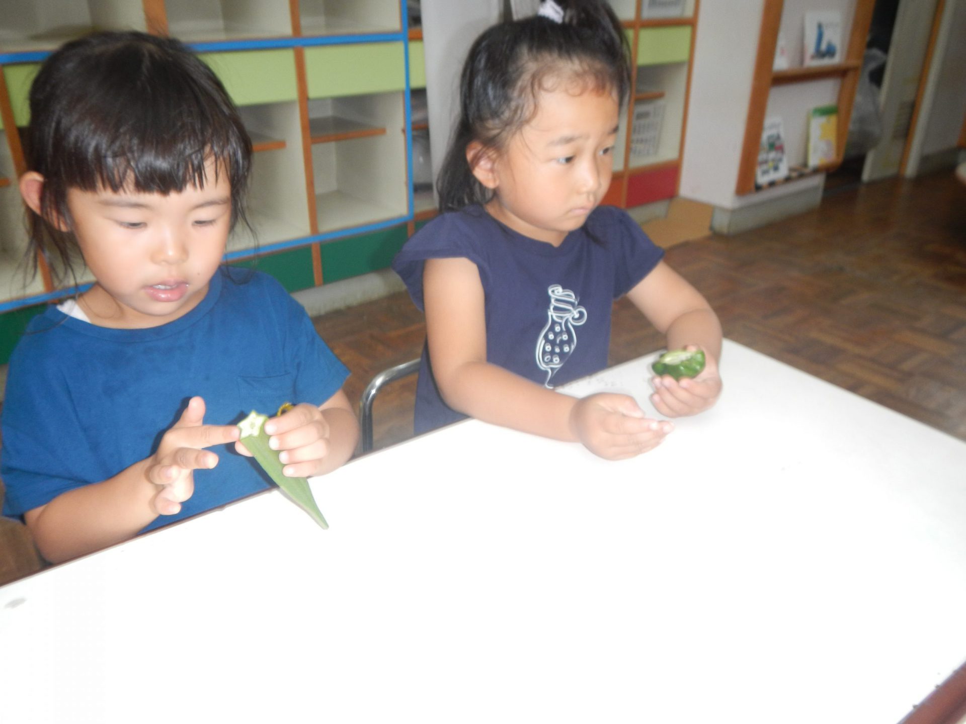 ・オクラを切ってみると・・・「お星様みたい!」