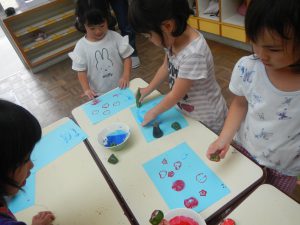 硬くなった野菜でスタンプ遊びをしてみました。