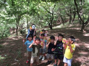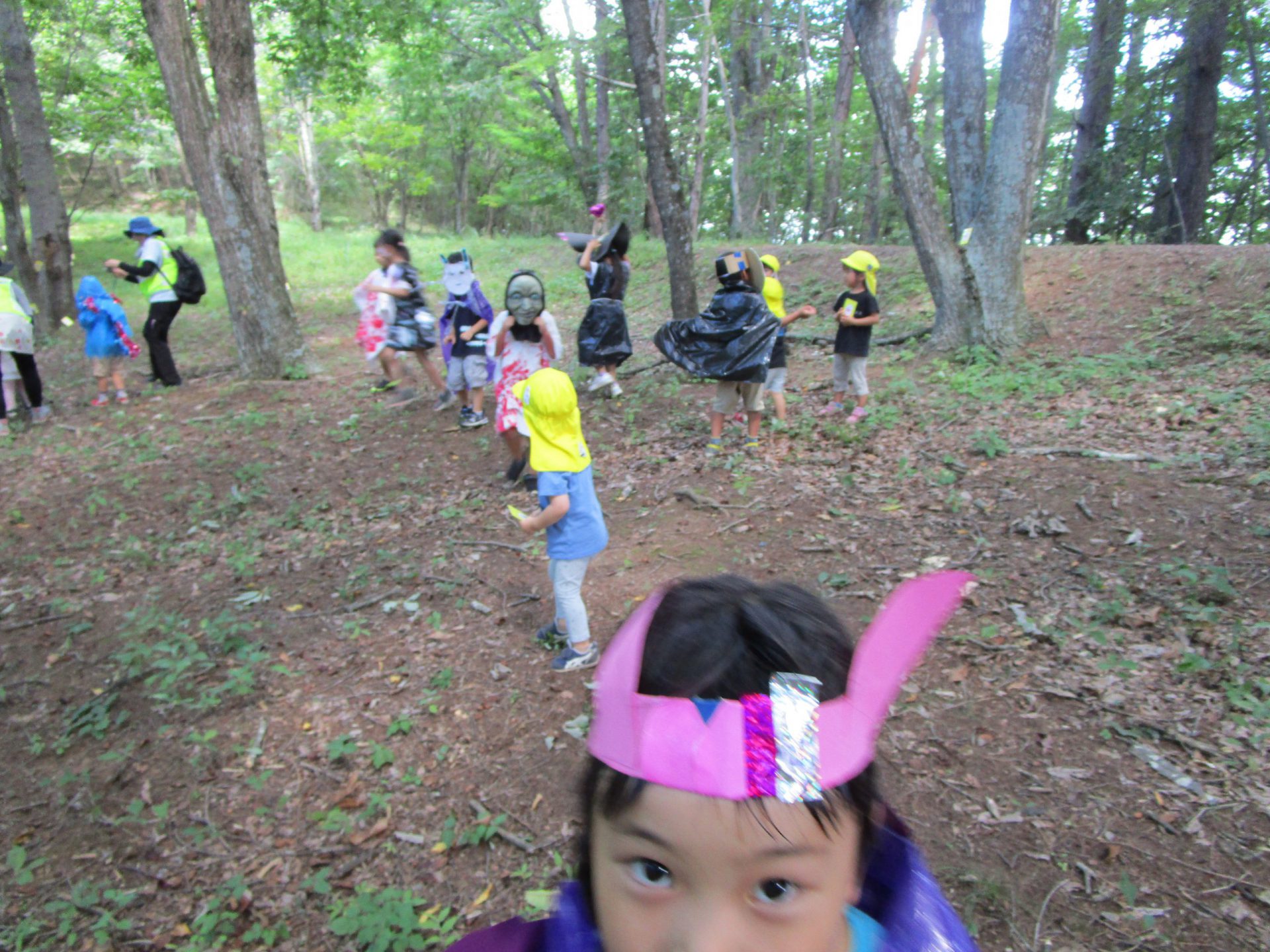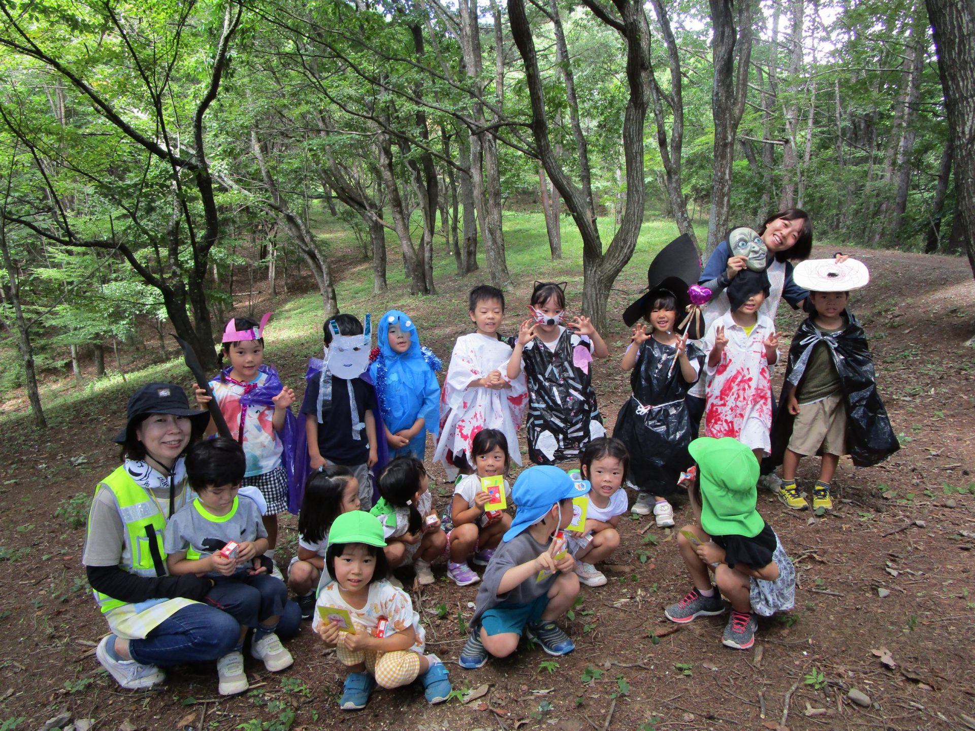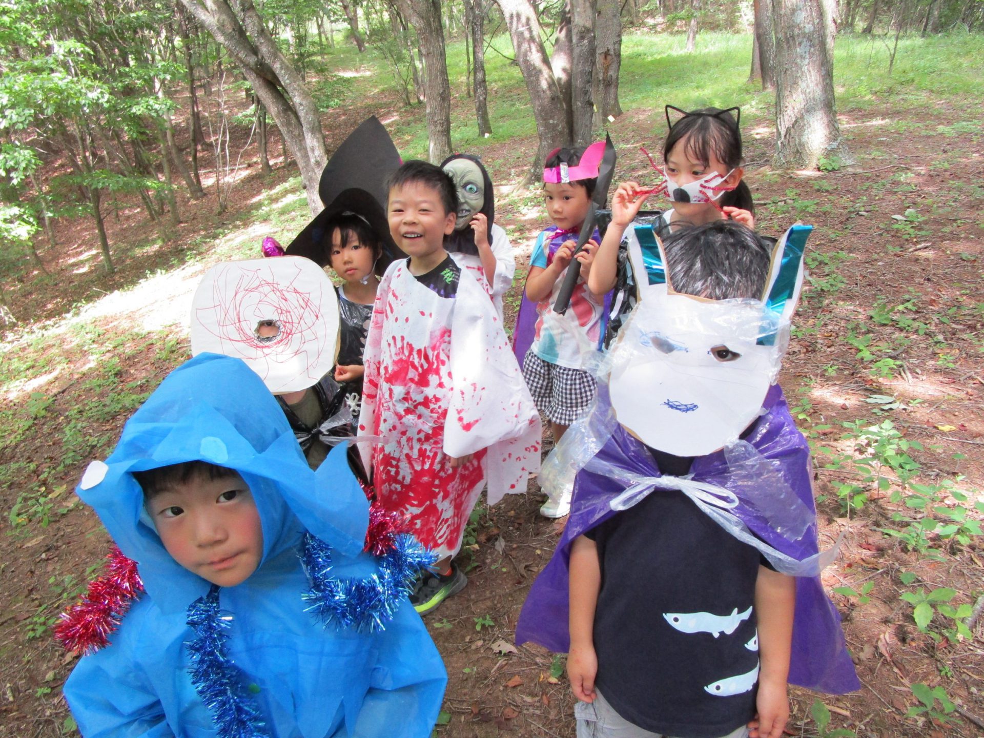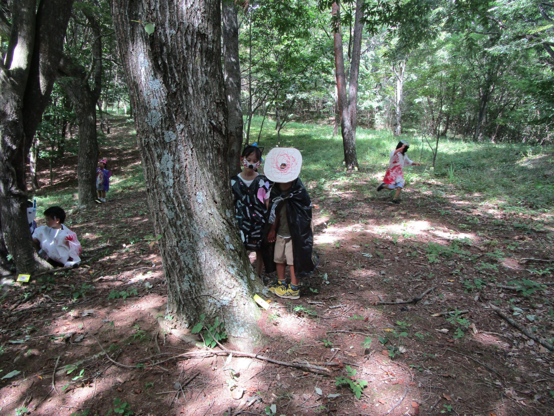 8月の誕生会は裏山で毎年恒例のおばけやしきをしました。